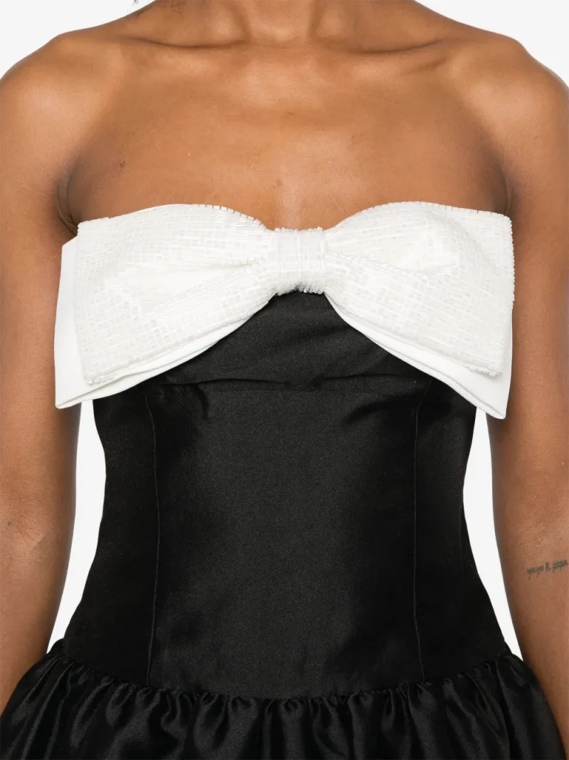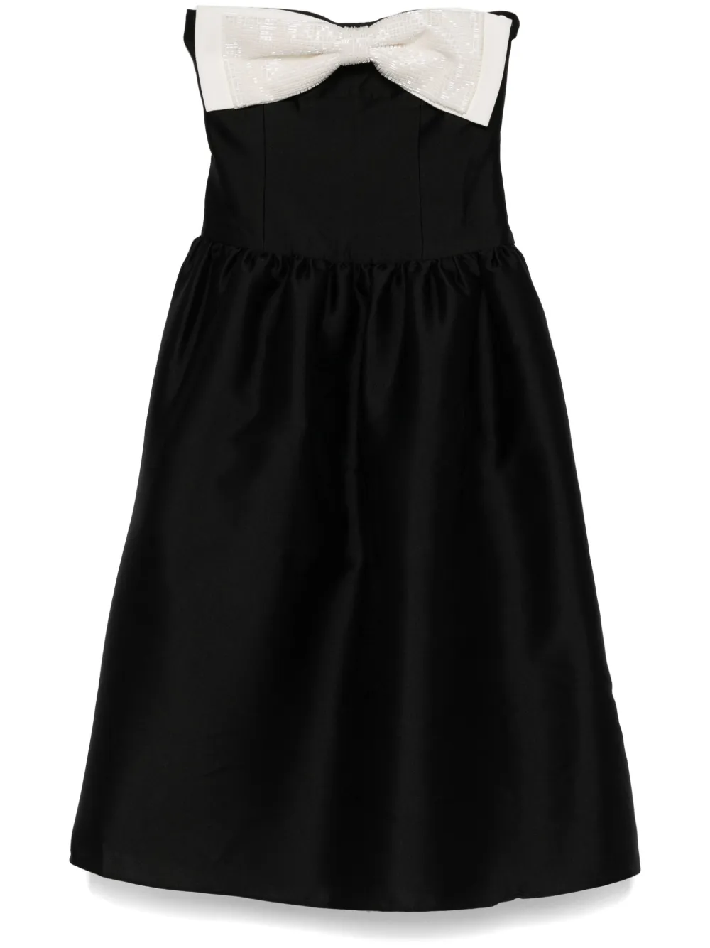 Rochie midi Self-Portrait taffeta contrast-bow negru, fara bretele, inchidere cu fermoar la spate, curea de umar detasabila, buzunare laterale. Potrivita pentru sezonul primavara/vara.100% poliester
