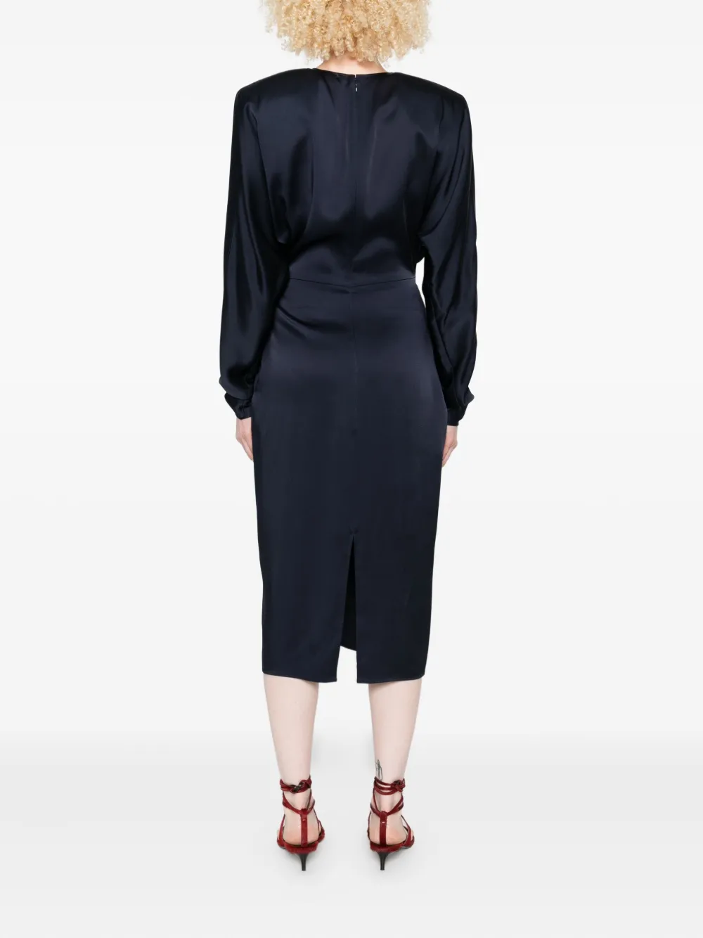 Rochie midi Stella McCartney Twist-Front Long-Sleeve bleumarin