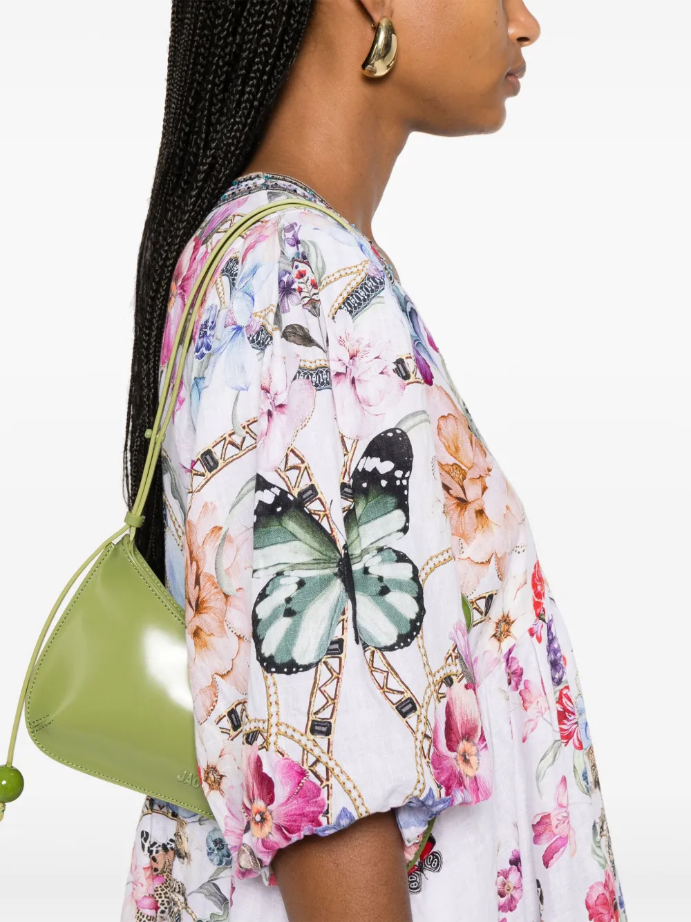 Rochie mini Camilla Monserrate Magic alb, din in, cu guler in V decorat cu cristale sclipitoare, inchidere cu fermor la spate, maneci scurte bufante, grafica florala imprimata si tiv asimetric. Potrivita pentru sezonul primavara/vara. 100% in.