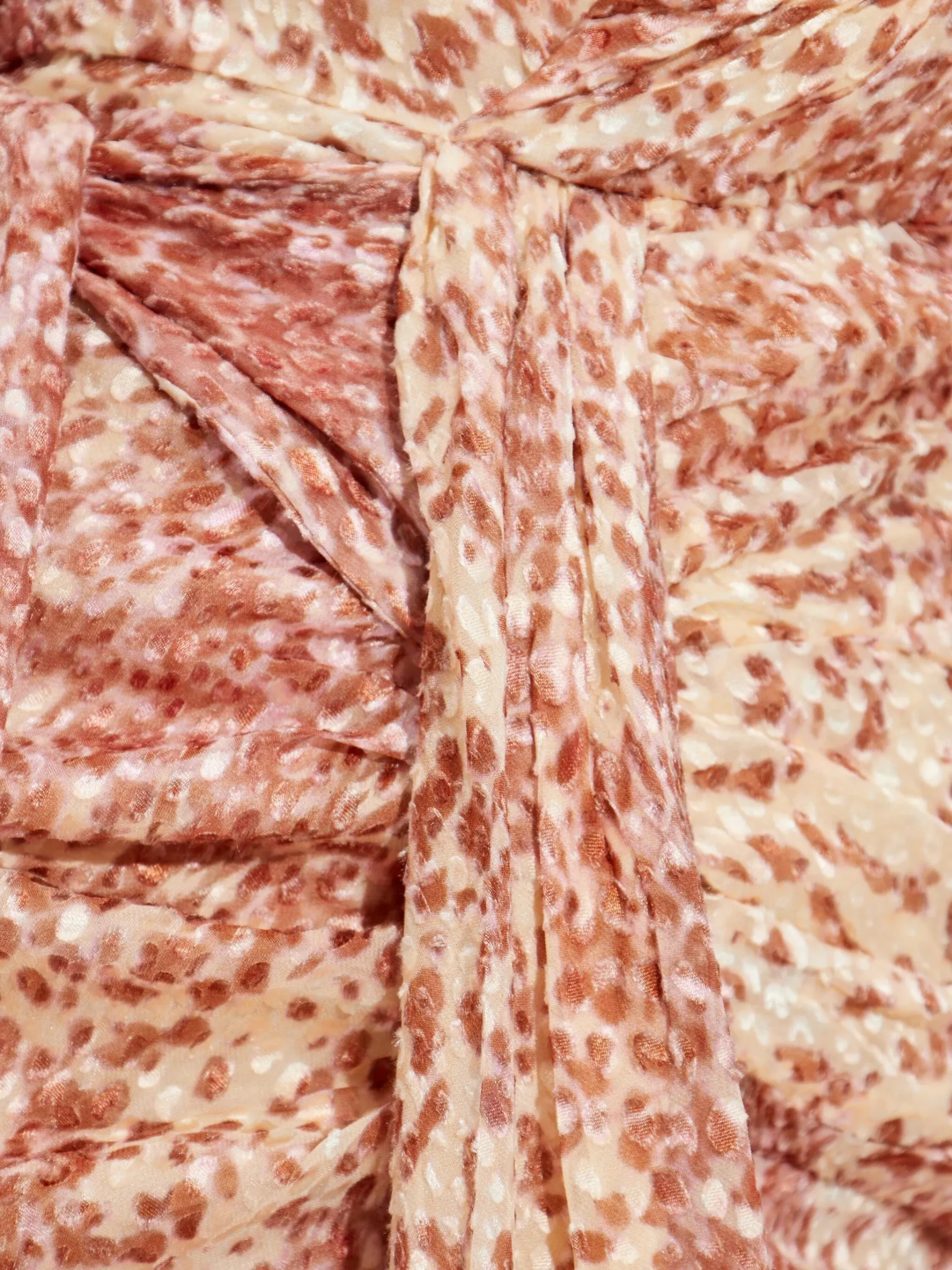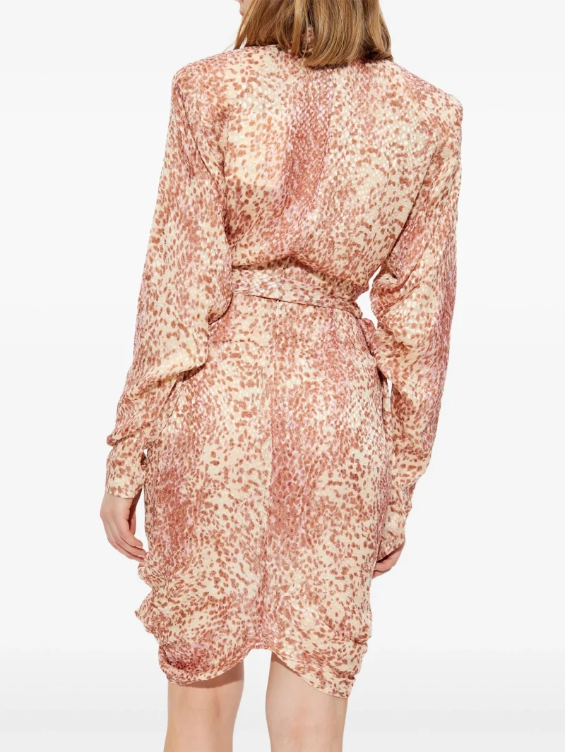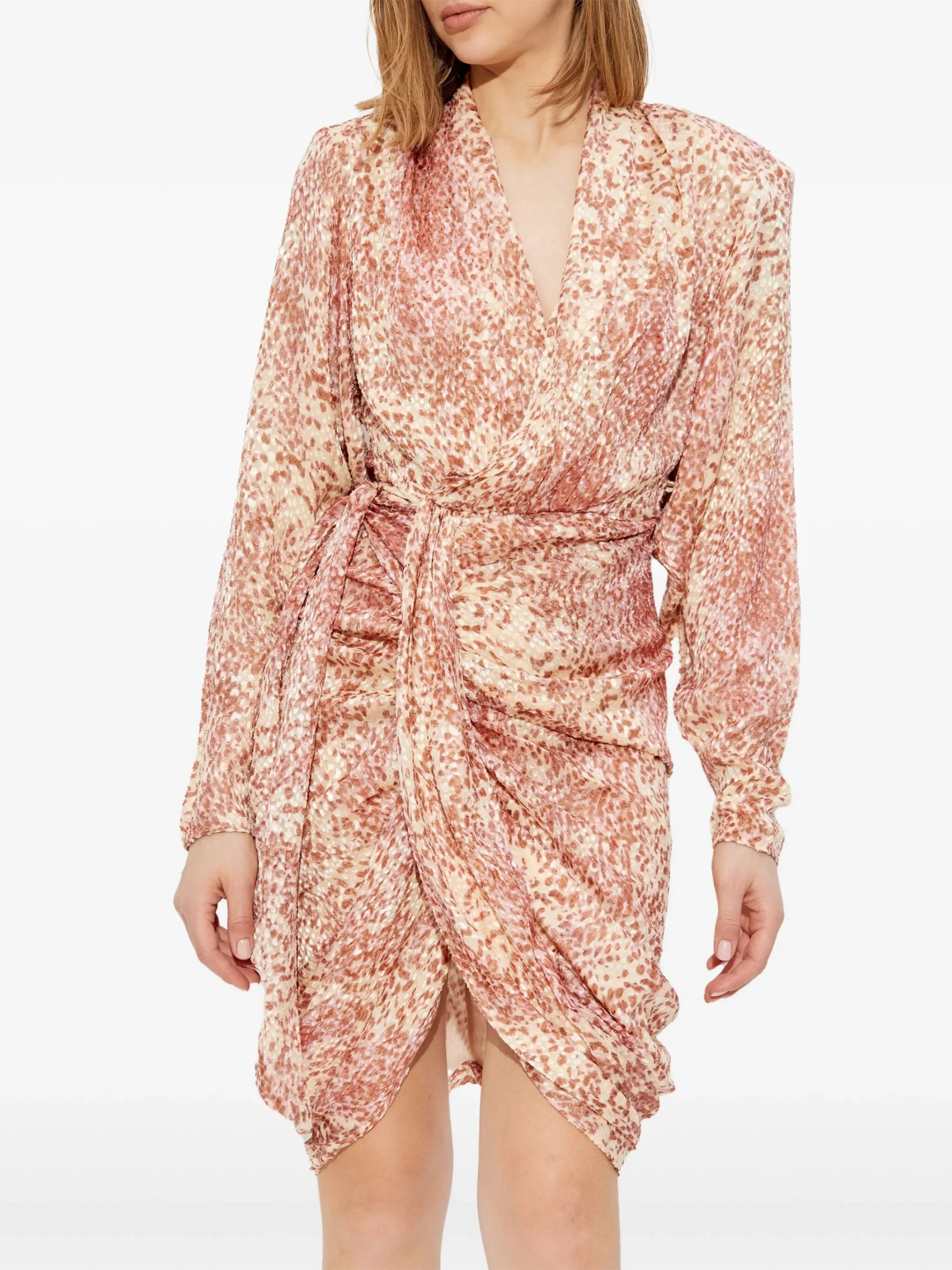 Rochie mini Isabel Marant Cleora roz, inchudere cu cordon, decolteu in V, maneci lungi si design drapat. Potrivita pentru sezonul primavara/vara. 50% matase 50% vascoza