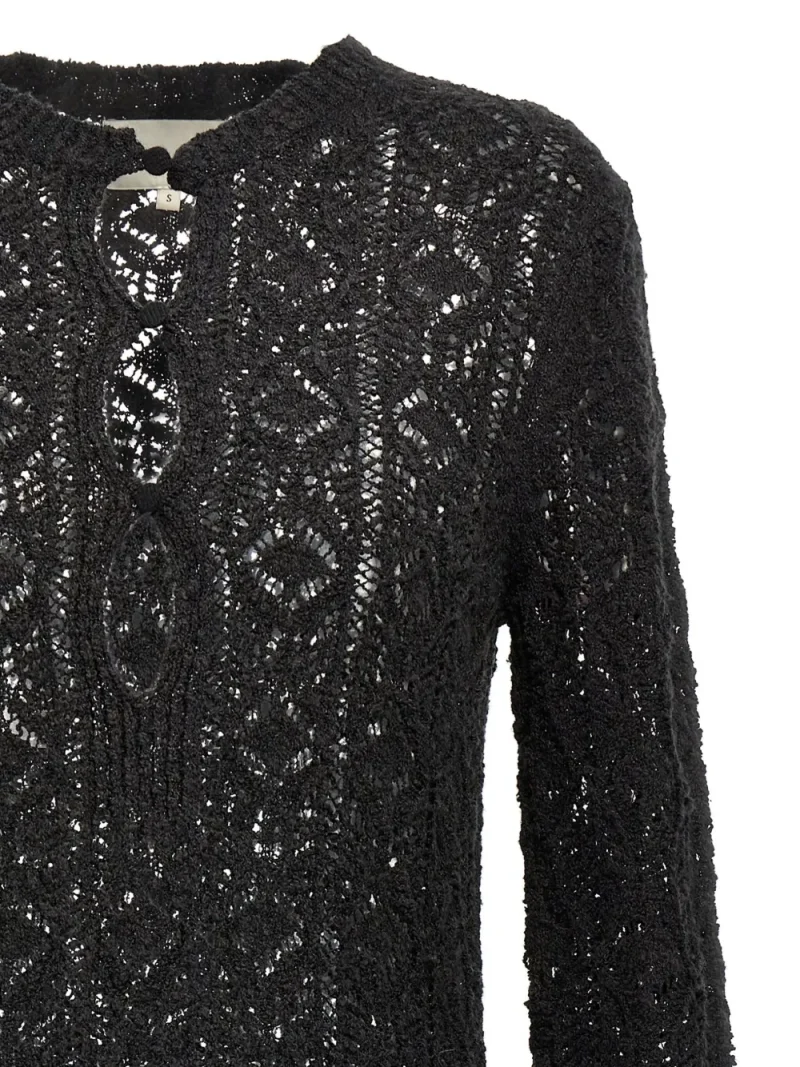 Rochie mini Loulou de Saison Evans negru, design tricotat din matase, cu guler rotund, maneci lungi, mansete ribbed, detalii decupate si tiv drept. Potrivit pentru sezonul primavara/vara. 100% matase.