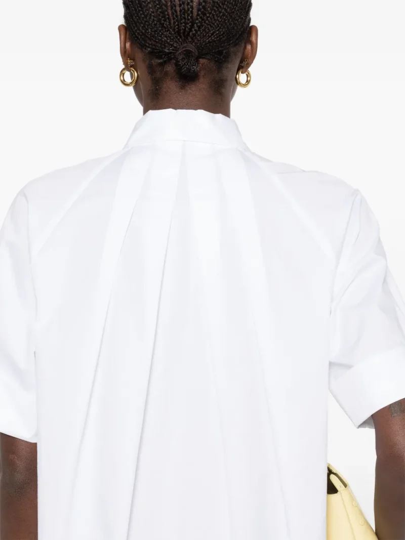 Rochie mini Peserico Poplin alb, tip camasa, din bumbac, cu guler clasic, inchidere cu nasturi, maneci scurte si tiv drept. Potrivita pentru sezonul primavara/vara. 100% bumbac.