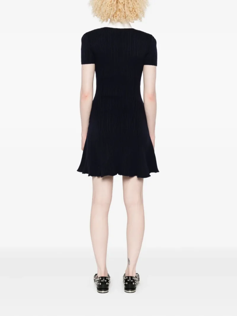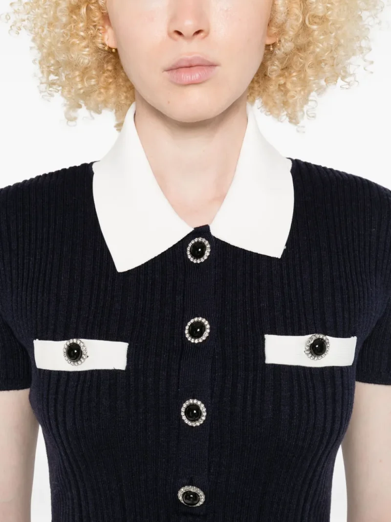 Rochie mini Self Portrait collared button-detail negru, inchidere cu fermoar, maneci scurte, 42% nylon 22% vascoza 17% poliester 15% lana 4% alpaca