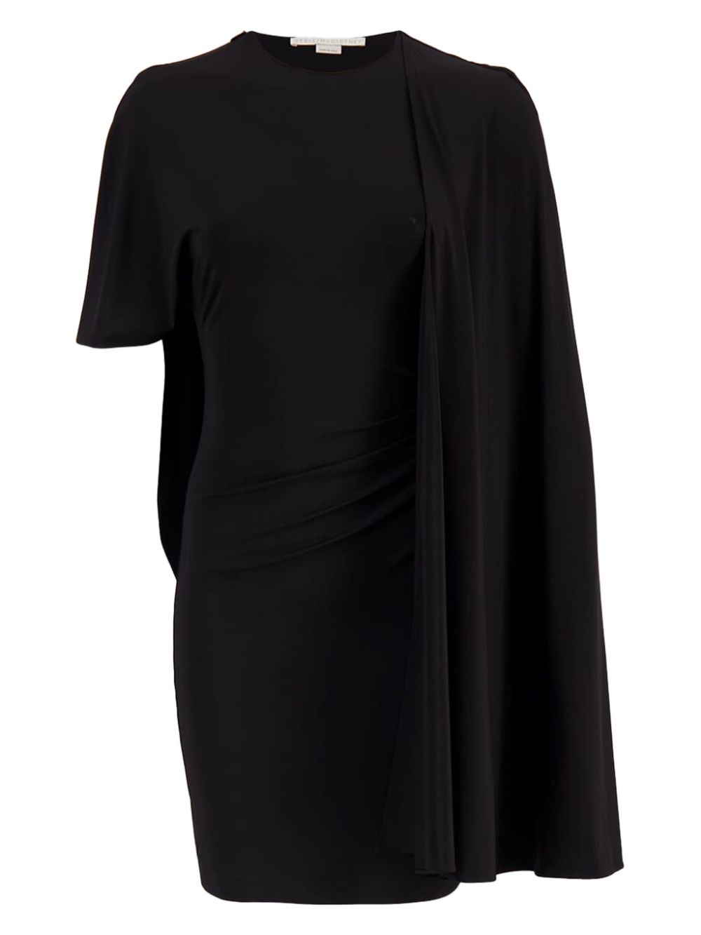 Rochie mini Stella McCartney Asymmetric negru, confectionata din viscoza premium, cu guler crew-neck, maneci scurte, constructie structurata cu accent tip capa si tiv drept. Potrivita pentru sezonul primavara/vara. 100% viscoza.
