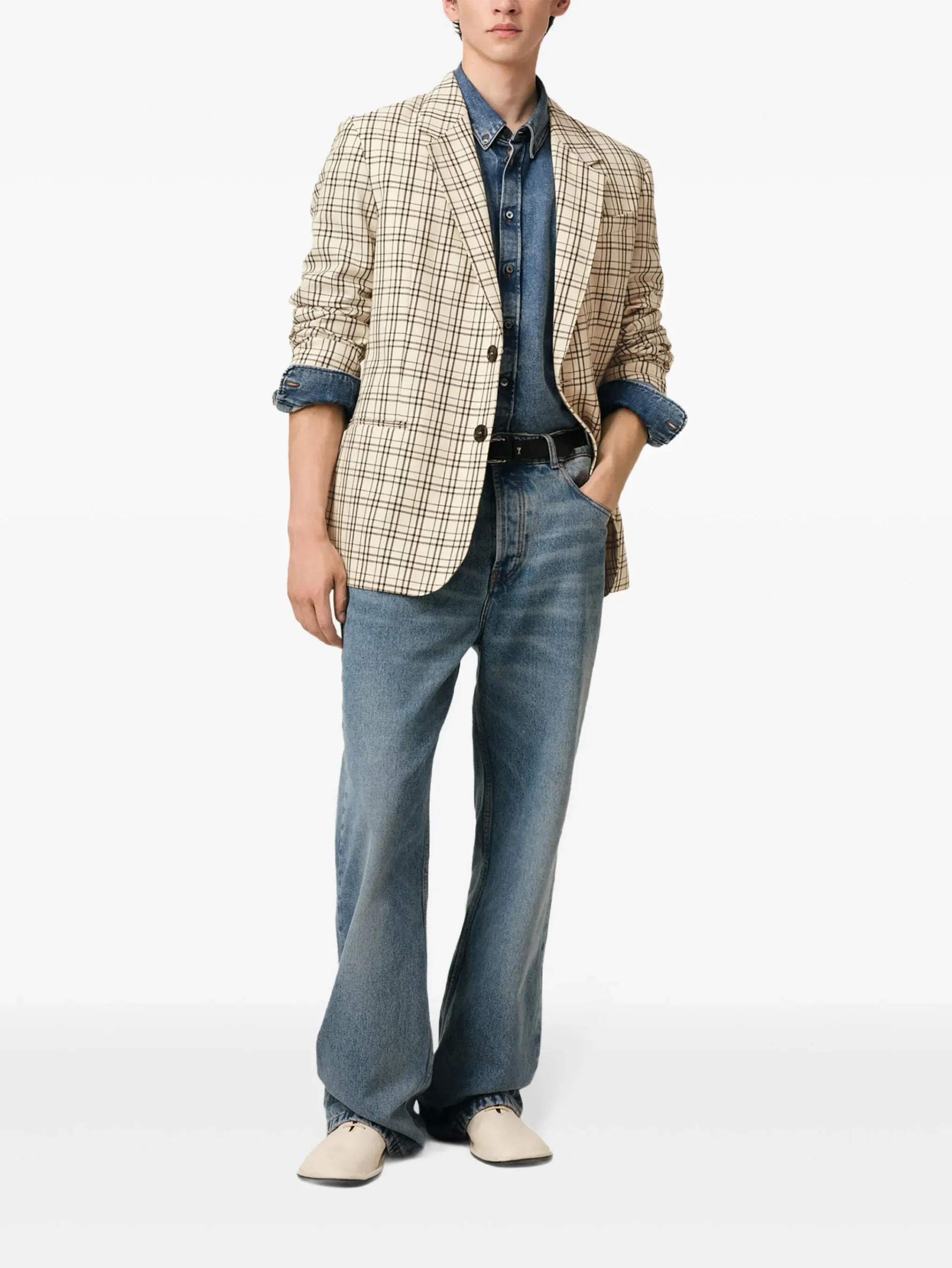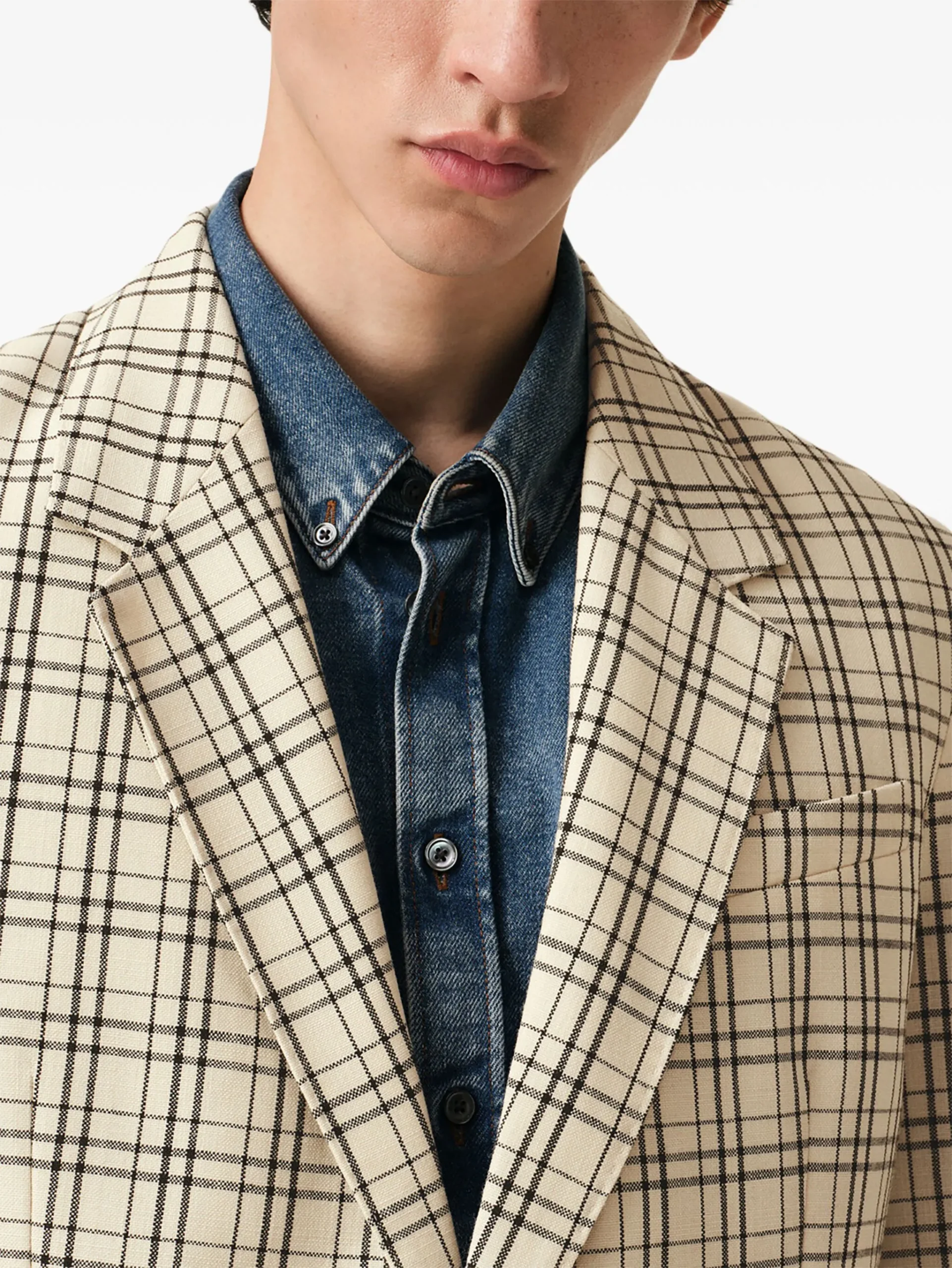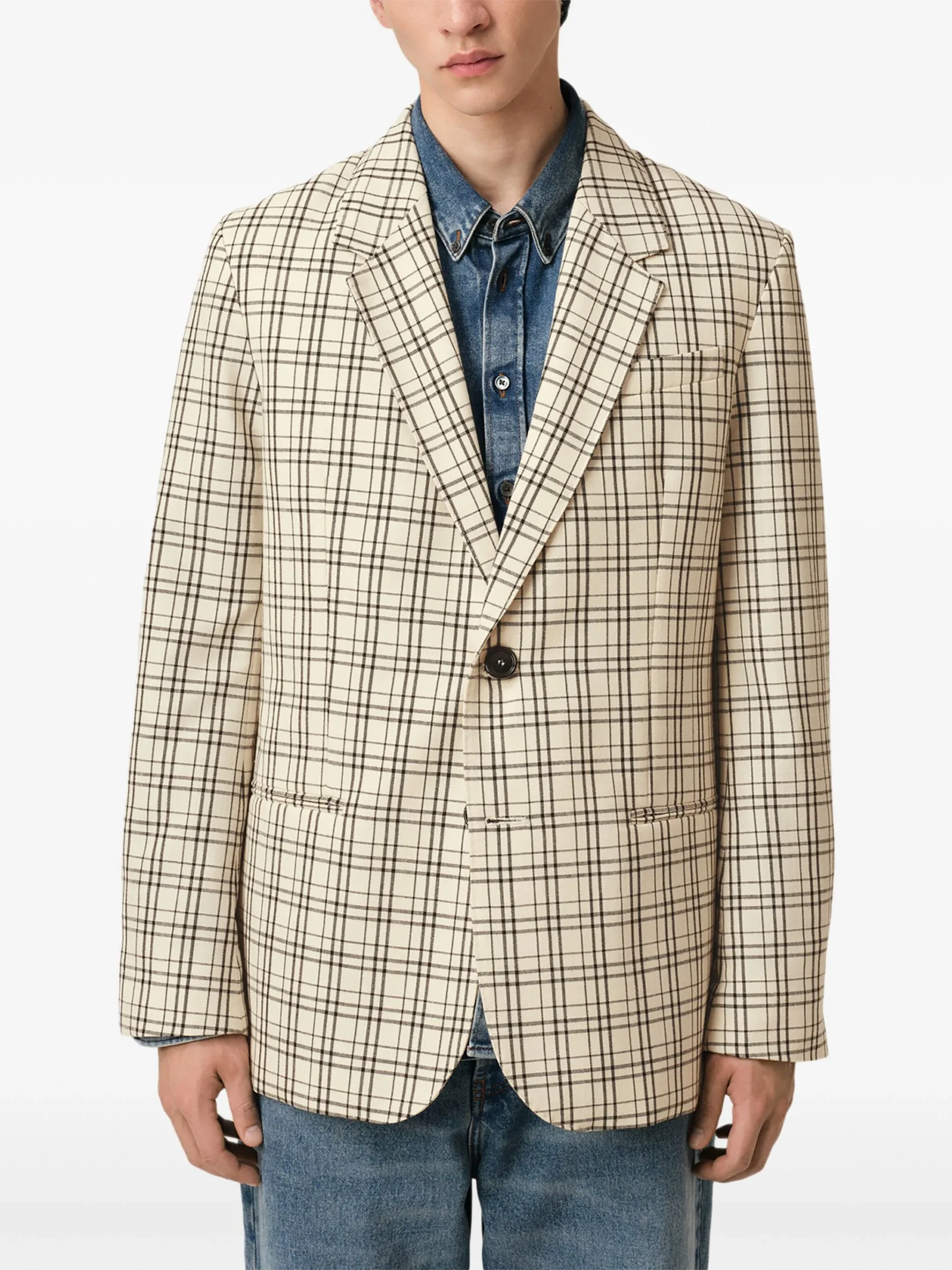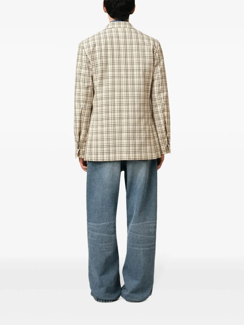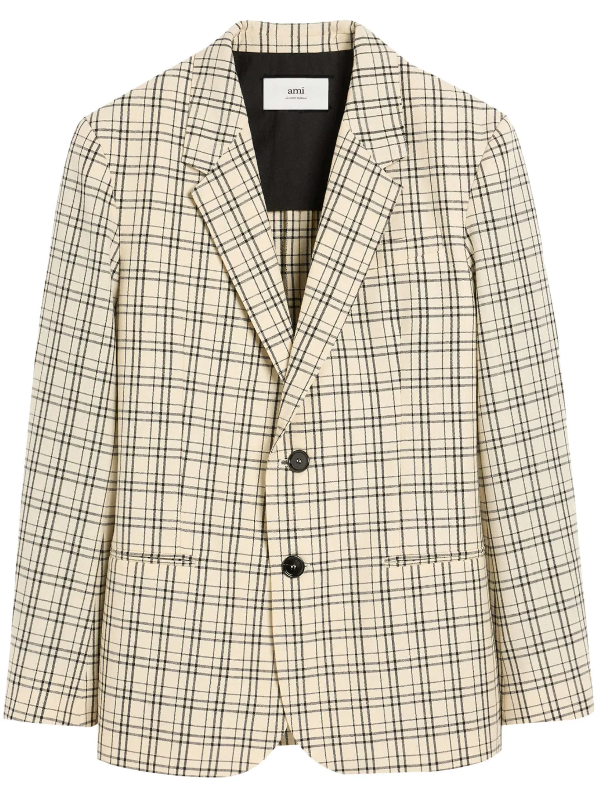 Sacou AMI Paris multicolor, buzunare laterale, buzunar la piept, revere crestate si inchidere cu nasturi. 100% lana