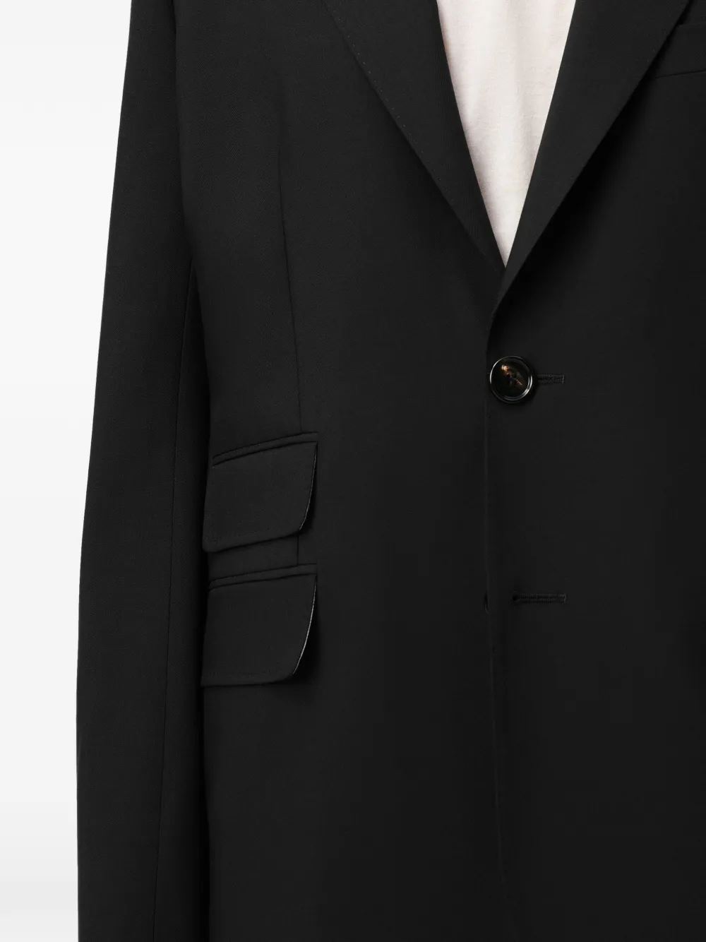 Sacou AMI Paris Single Breasted Boxy negru, design structurat realizat din lana, cu rever crestat, inchidere cu nasturi, maneci lungi, buzunare cu clapeta si buzunare interioare, maneci lungi si tiv drept cu slit la spate. Potrivit pentru sezonul primavara/vara. 50% poliester; 50% bumbac; 100% lana;