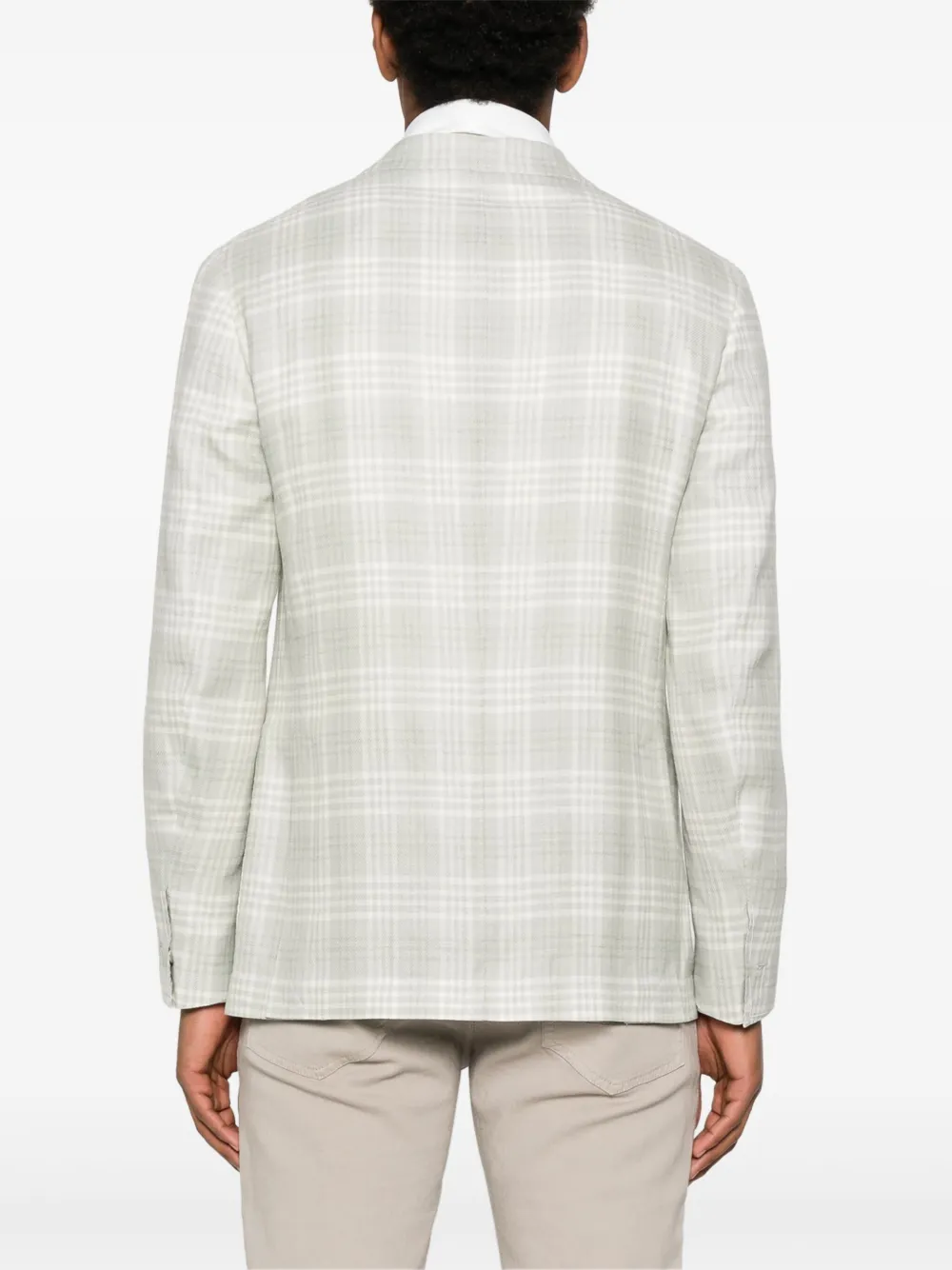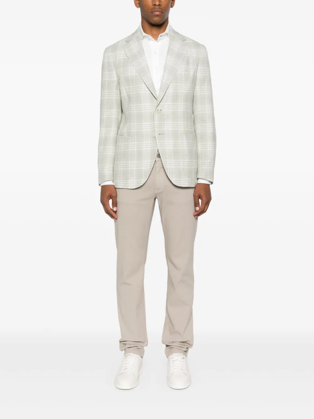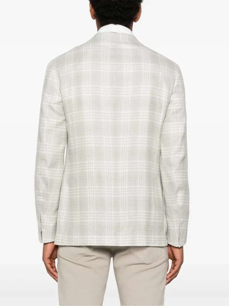 Sacou cu rever tip peak, inchidere cu nasturi, maneci lungi, mansete cu nasturi, buzunare laterale si tiv drept. Potrivit pentru sezonul toamna/iarna. 44% in 42% lana 13% matase 1% elastan