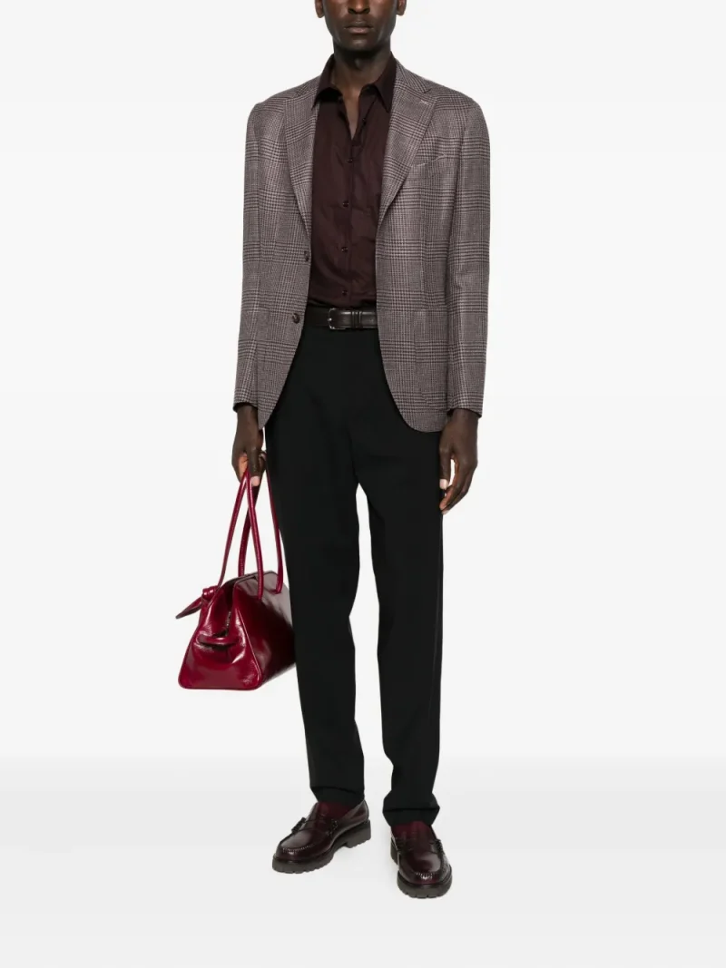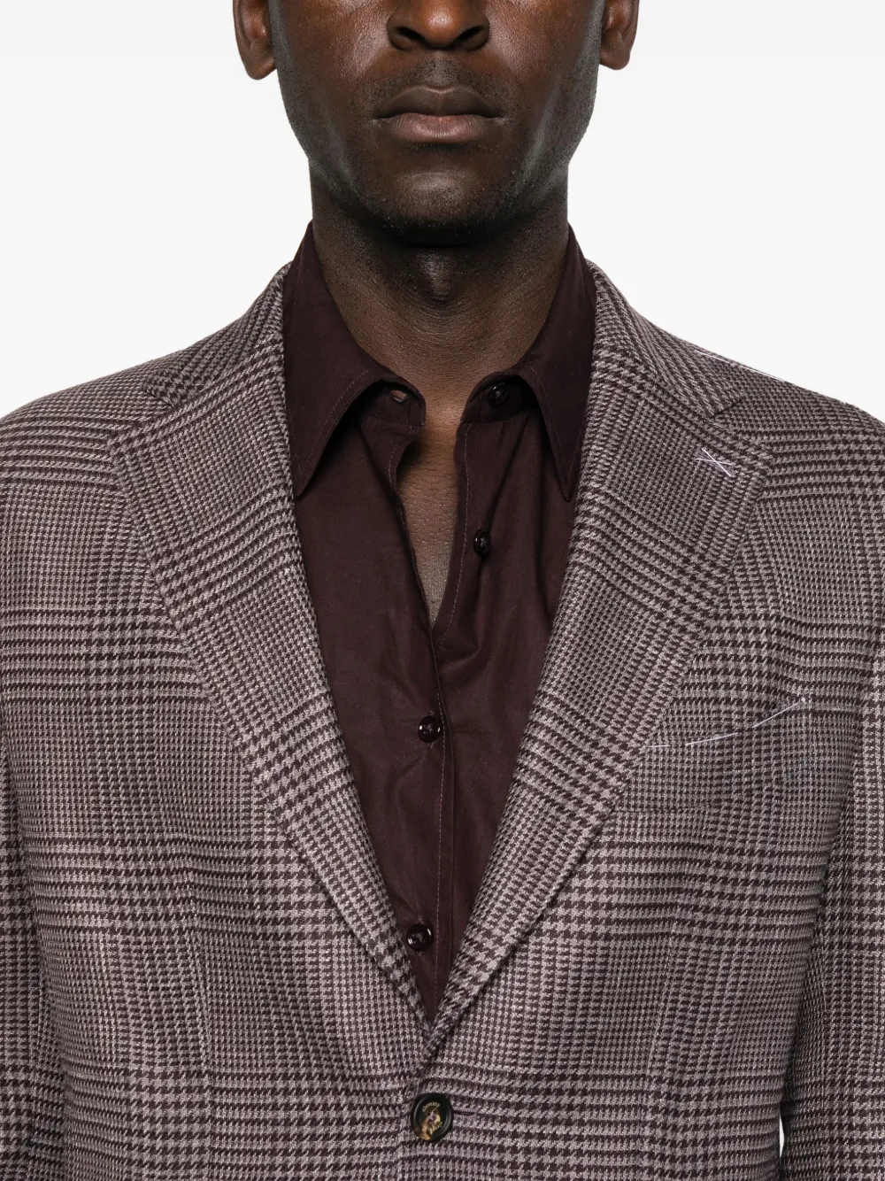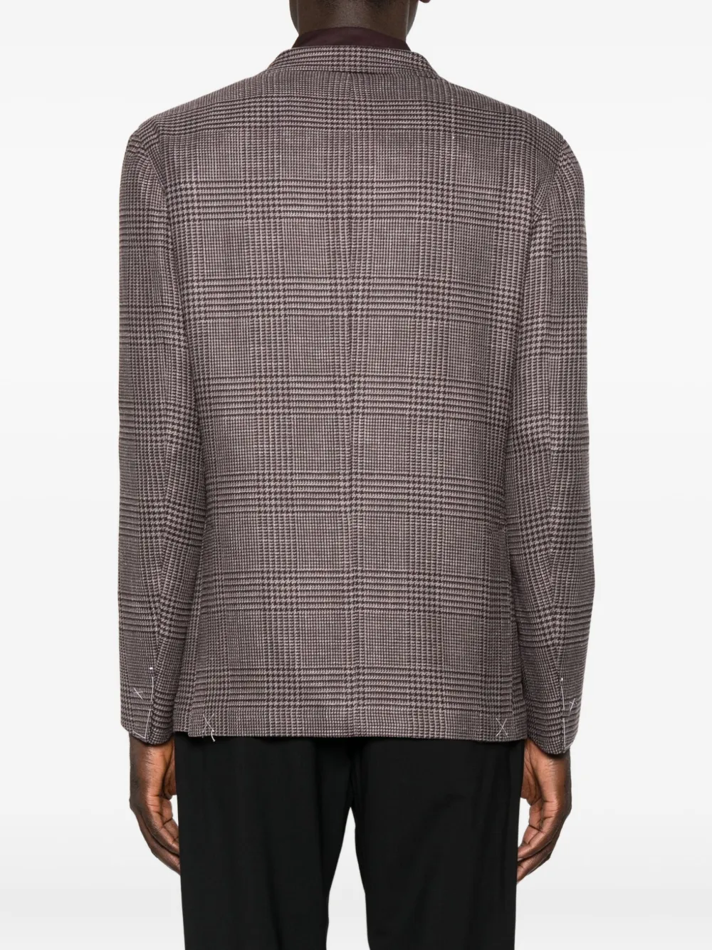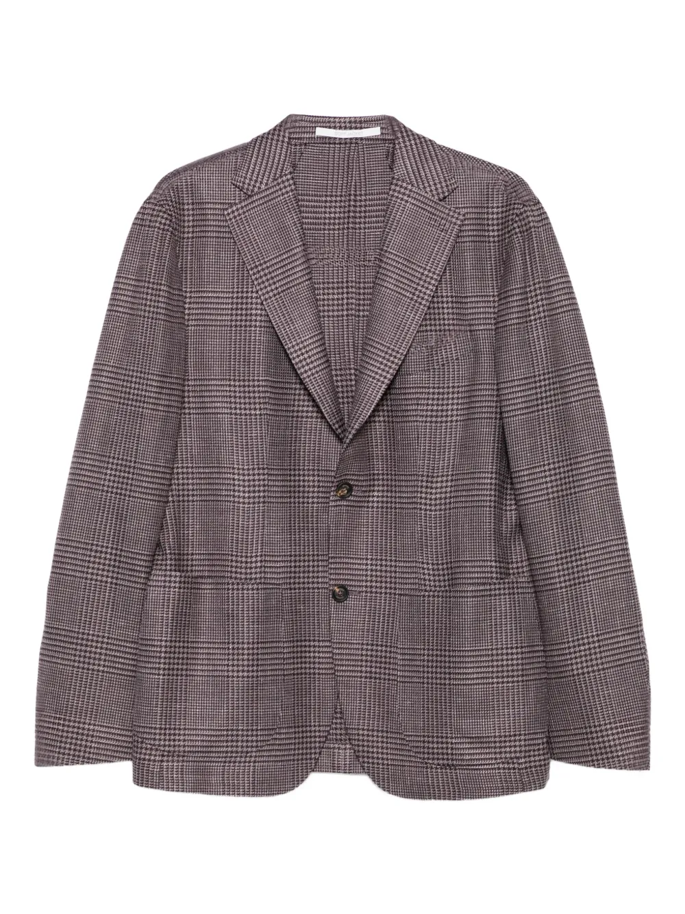 Sacou Eleventy Checked Single-Breasted mov, cu rever crestat, inchidere cu nasturi, maneci lungi, buzunare aplicate lateral si buzunar welt la piept, grafica tartan in tesatura si tiv drept. Potrivit pentru sezonul toamna/iarna. 62% lana; 20% matase; 17% in; 1% elastan.
