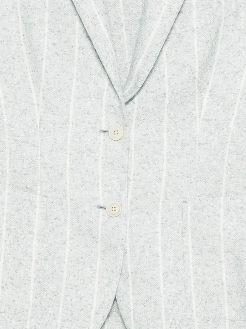 Sacou Eleventy Striped albastru, realizat din materiale premium, cu rever crestat, inchidere cu nasturi, maneci lungi, grafica Striped in tesatura, buzunare laterale aplicate si tiv drept. Potrivit pentru sezonul primavara/vara. 74% in; 26% poliamida.