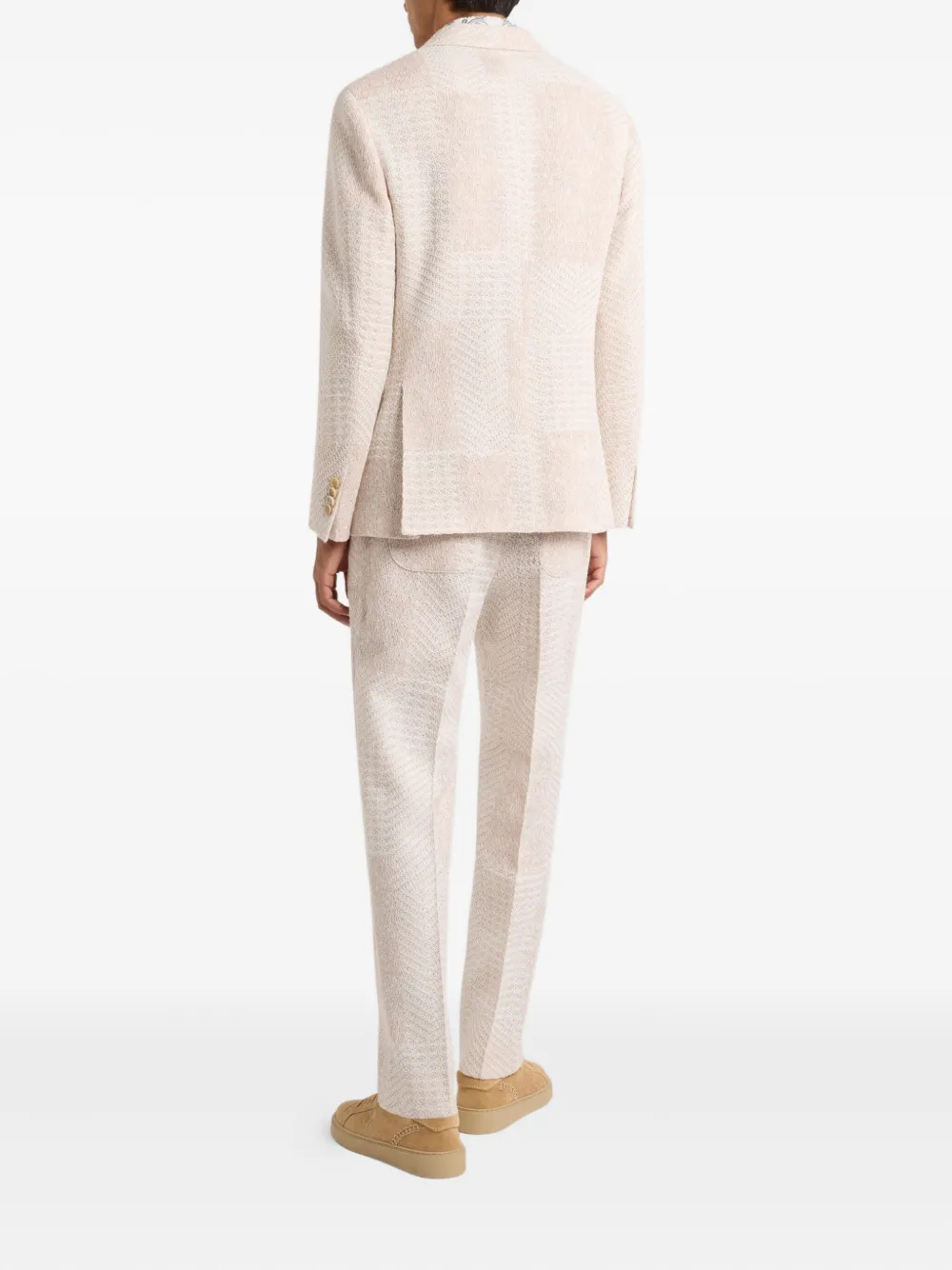 Sacou ETRO Herringbone-Pattern bej, cu rever crestat, inchidere cu nasturi, maneci lungi, buzunare aplicate lateral, tesatura cu pattern herringbone si tiv drept. Potrivit pentru sezonul toamna/iarna. 50% lana; 50% acril.