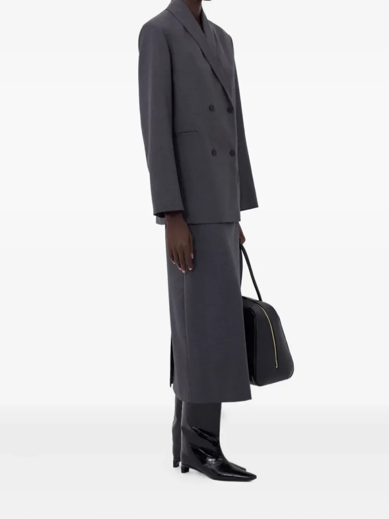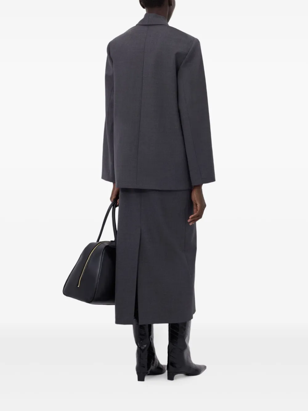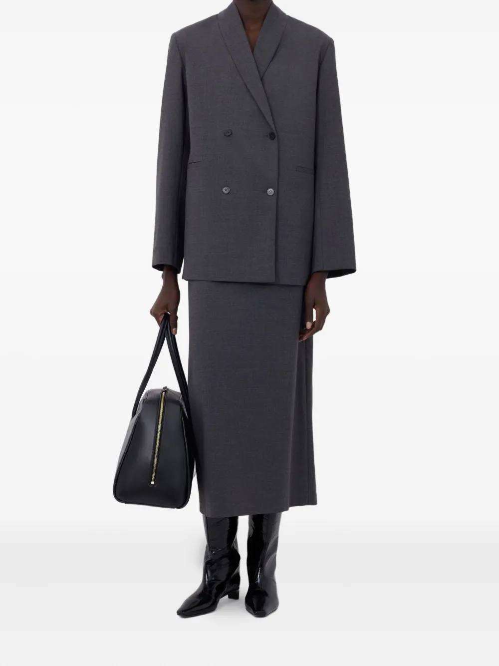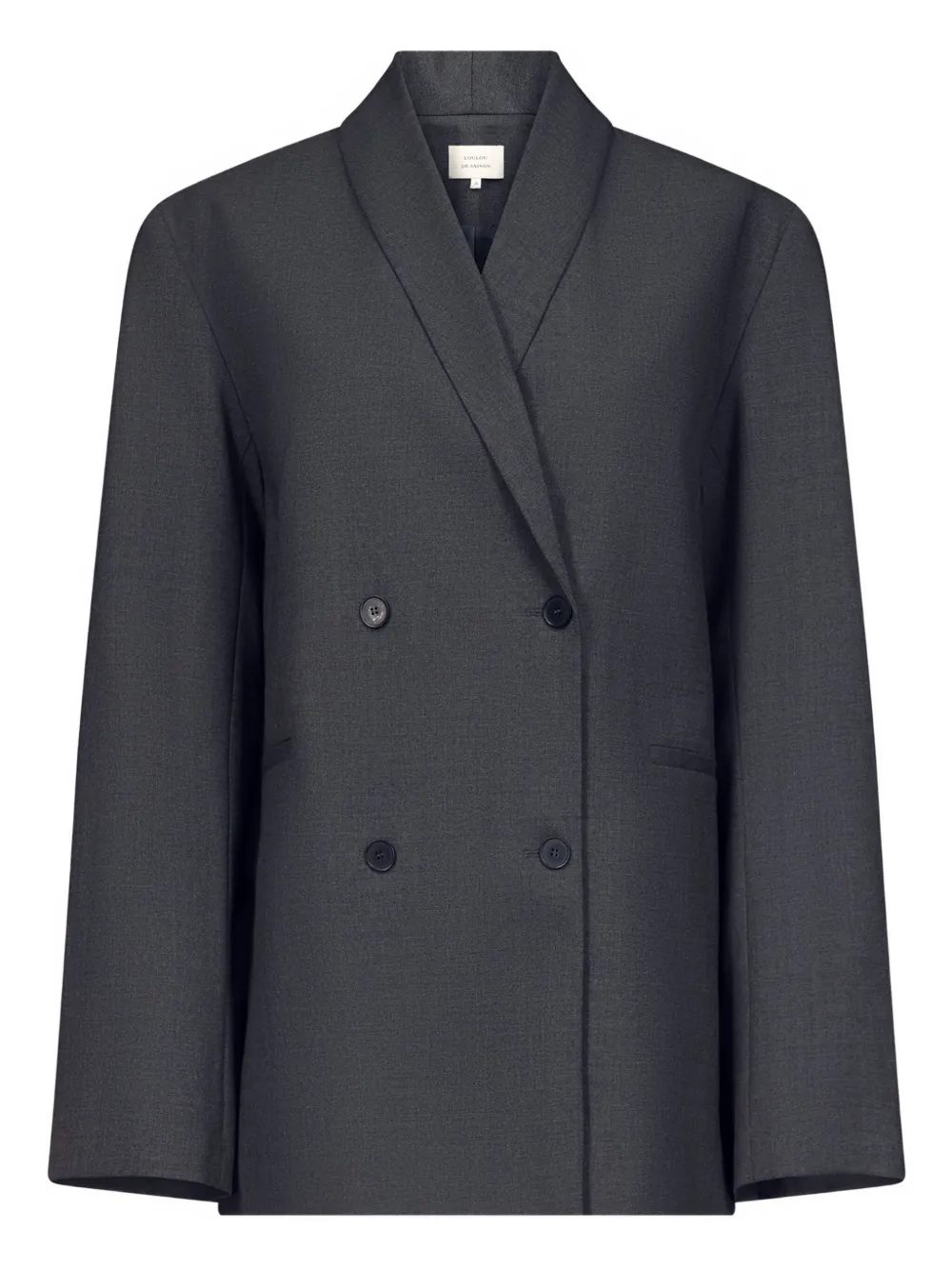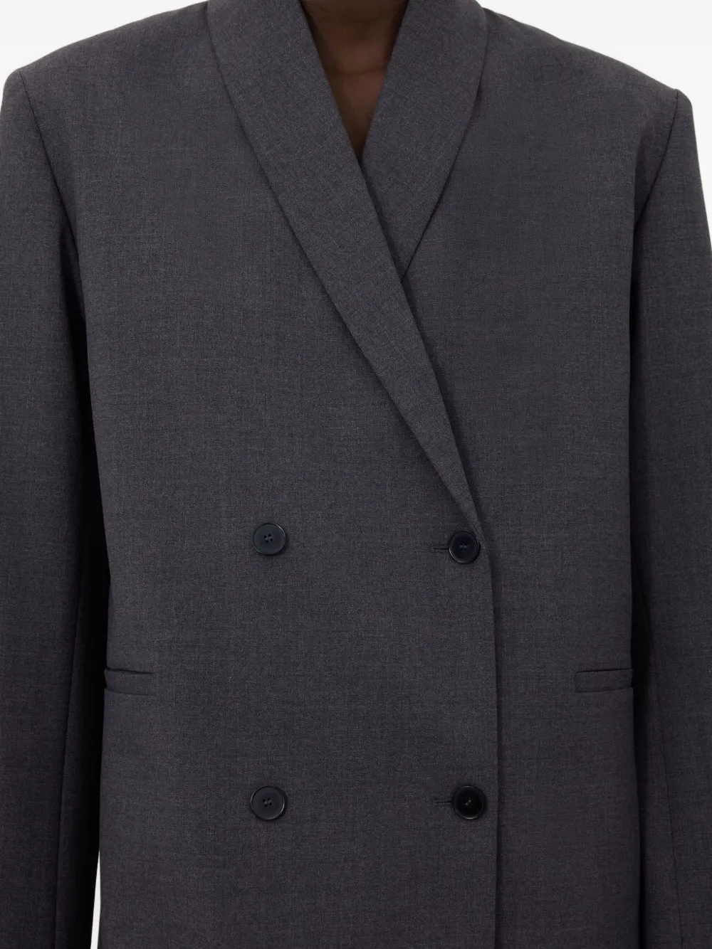 Sacou LouLou de Saison Double-Breasted Hawl-Collar gri, realizat din lana, cu rever shawl, inchidere cu nasturi dubli, maneci lungi, buzunare laterale tip welt si tiv drept. Potrivit pentru sezonul toamna/iarna. 95% lana; 5% elastan.