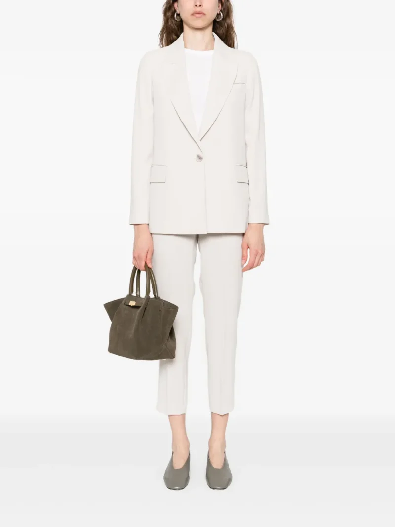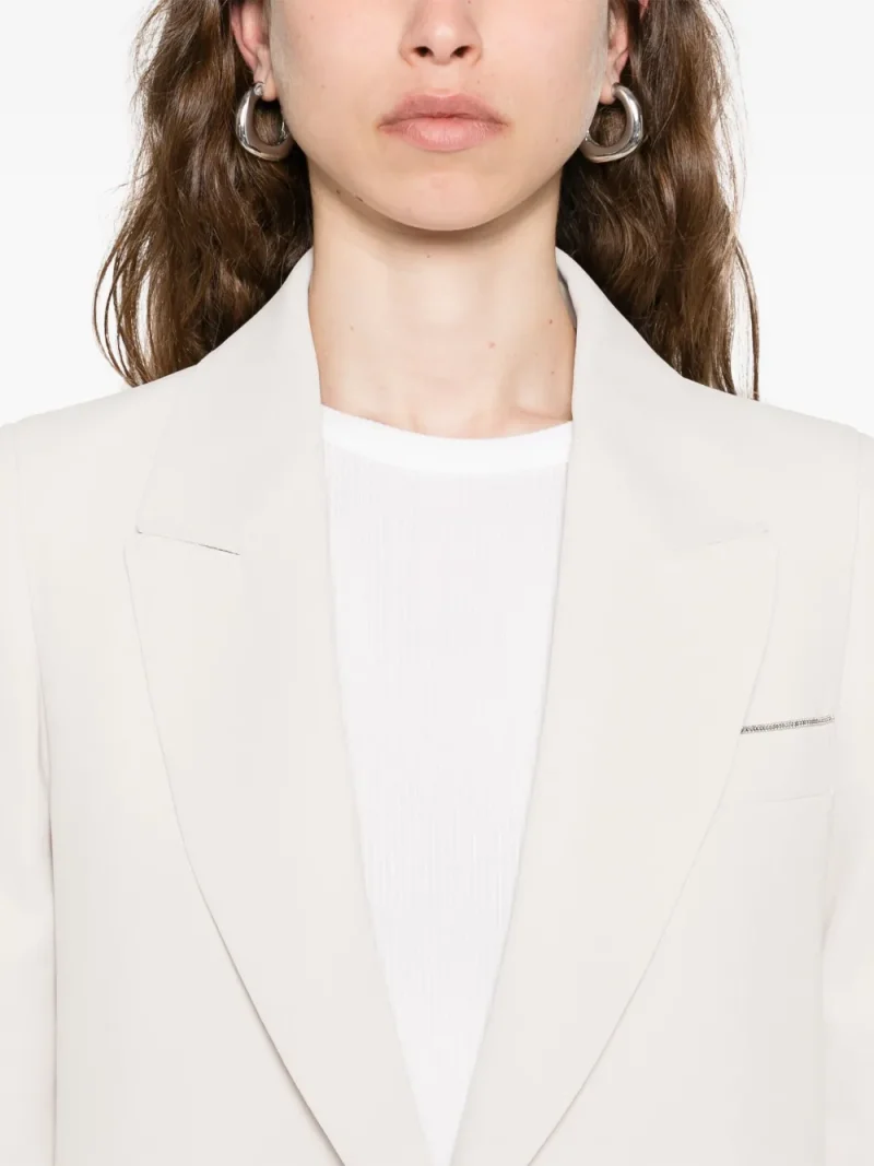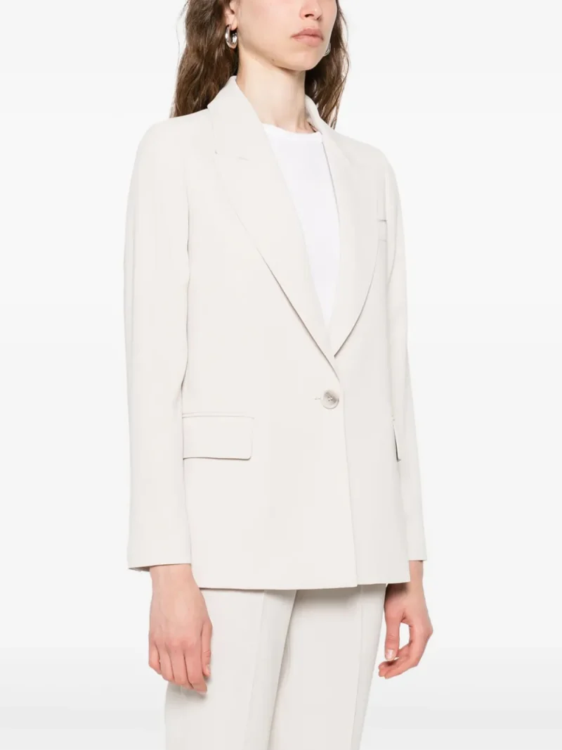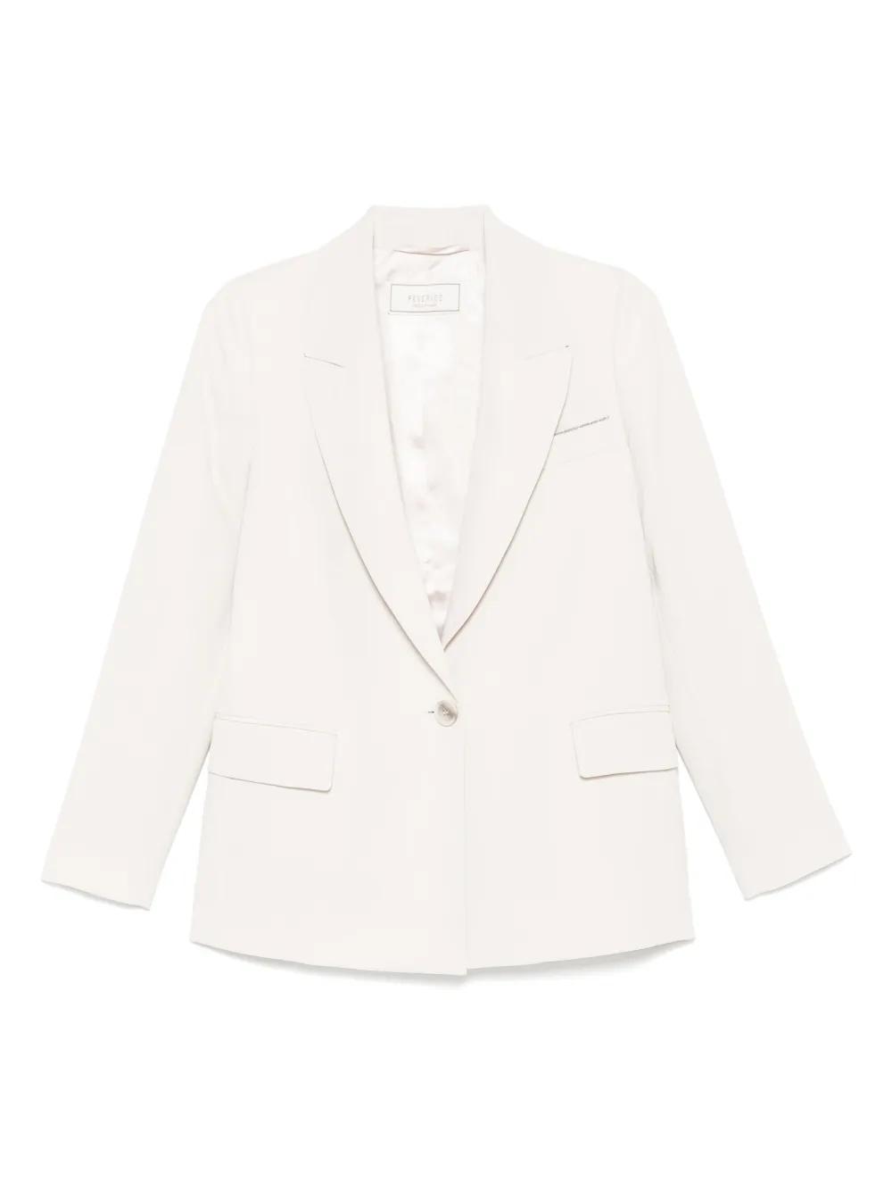 Sacou Peserico Single-Breasted Blazer bej, din poliester, cu rever crestat, inchidere cu un singure nasture, maneci lungi, buzunare aplicate lateral, captuseala din viscoza si tiv drept. Potrivit pentru sezonul toamna/iarna. 100% poliester; 100% viscoza.
