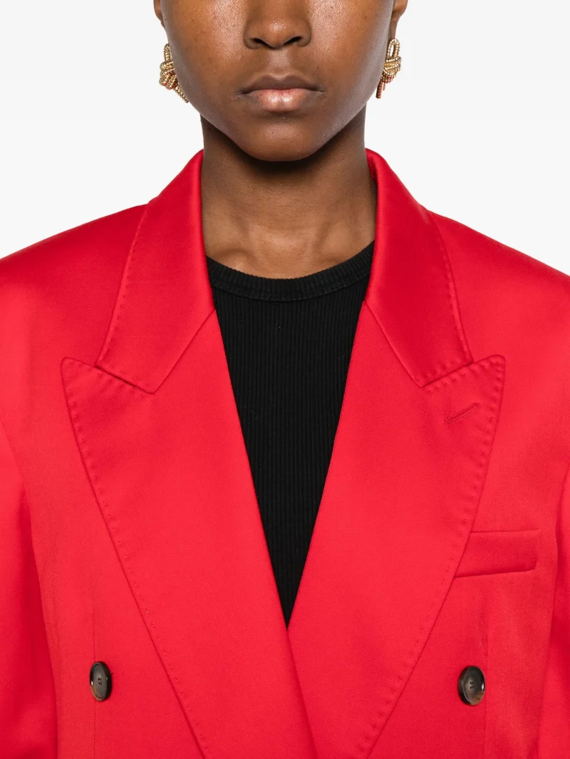 Sacou Stella McCartney double-breasted rosu, cu inchidere frontala cu nasturi, revere notched, maneci lungi, buzunare welt laterale si mansete cu nasturi. 100% lana