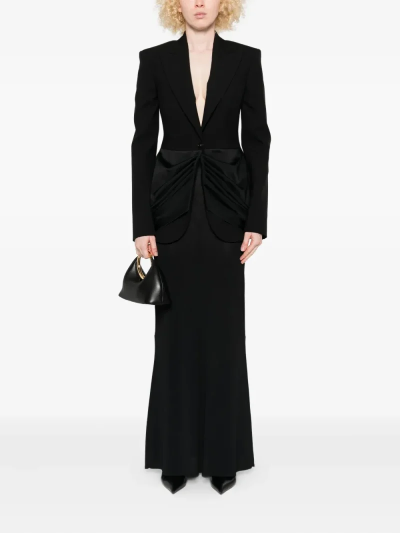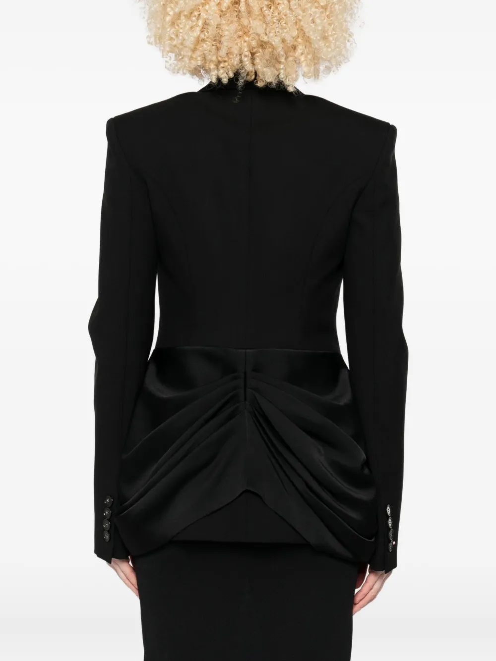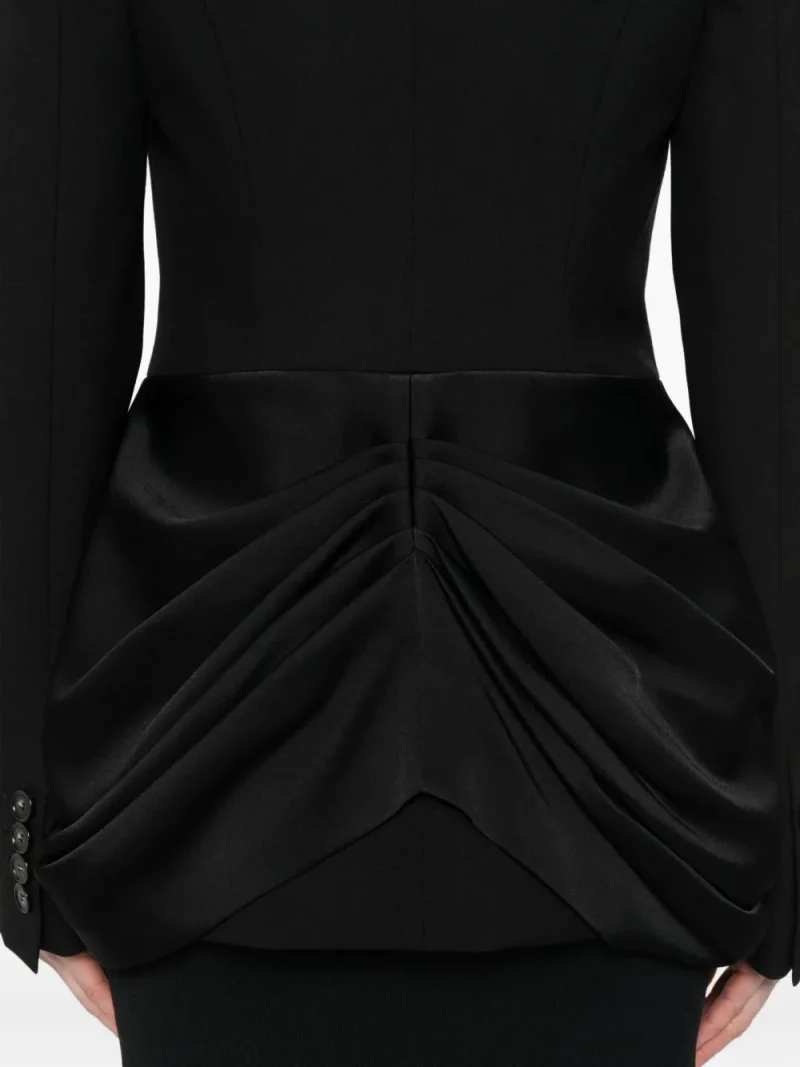 Sacou Stella McCartney Draped-Front negru, din lana, cu rever ascutit, inchidere cu un singure nasture, maneci lungi, decorat cu drapaje si tiv drept. Potrivit pentru sezonul toamna/iarna. 73% acetat; 100% lana; 27% viscoza; 48% bumbac; 52% viscoza.