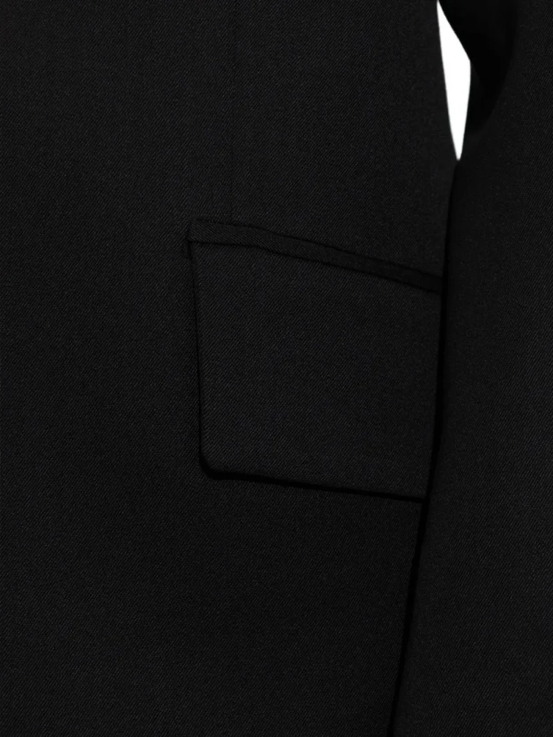 Sacou The Attico Padde -Shoulder negru, construit din lana, cu decolteu in V, maneci lungi, buzunare laterale cu clapeta si tiv drept. Potrivit pentru sezonul toamna/iarna.100% lana.