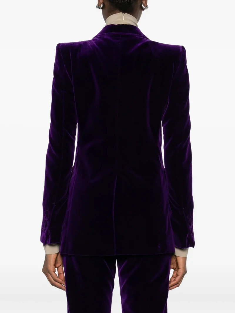 Sacou Tom Ford mov inchis, cu croiala single-breasted, rever ascutit, buzunare frontale cu clapeta, inchidere intr-un nasture si maneci lungi. Potrivit pentru sezonul toamna/iarna. 72% triacetat 28% poliester