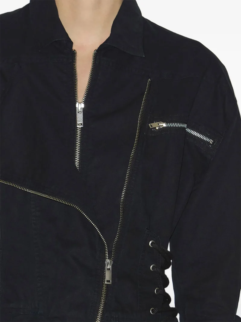 Salopeta Isabel Marant Irianna negru, inchidere cu fermoar, doua buzunare la piept cu fermoar, buzunare laterale cu fante, doua buzunare la spate, prindere cu sireturi in lateral si la maneci. Potrivita pentru sezonul primavara/vara.100% bumbac