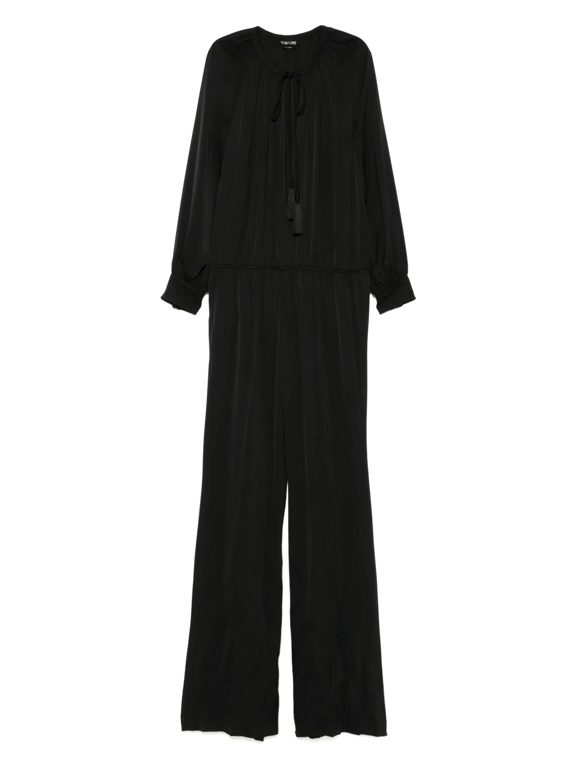 Salopeta TOM FORD long-sleeve neagra, banda elastica in talie, buzunare laterale, maneci cu nasturi. Potrivita pentru sezonul primavara/vara.100% vascoza