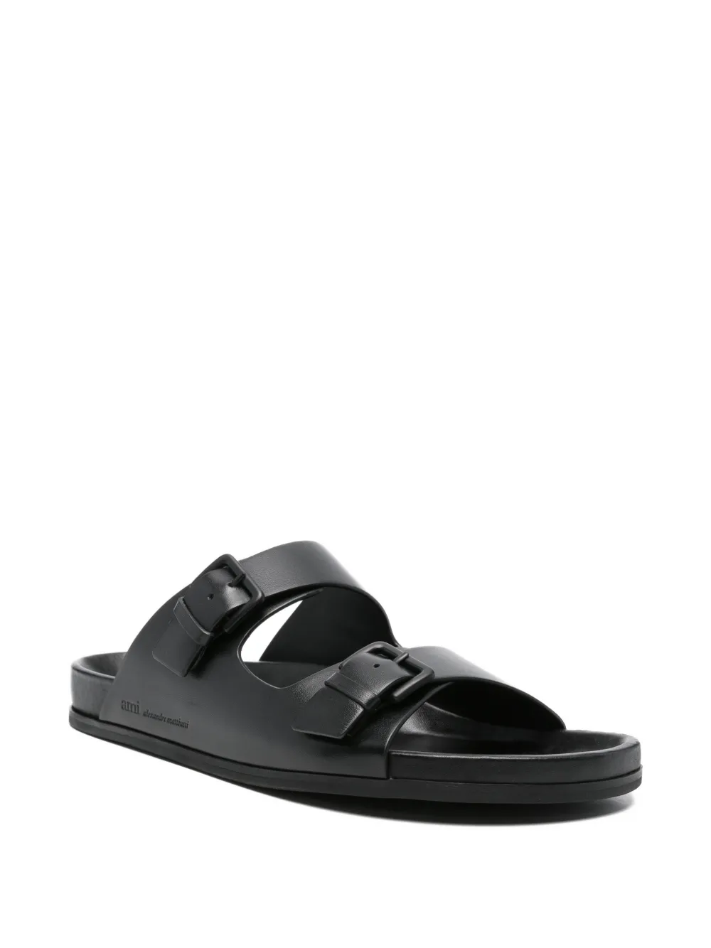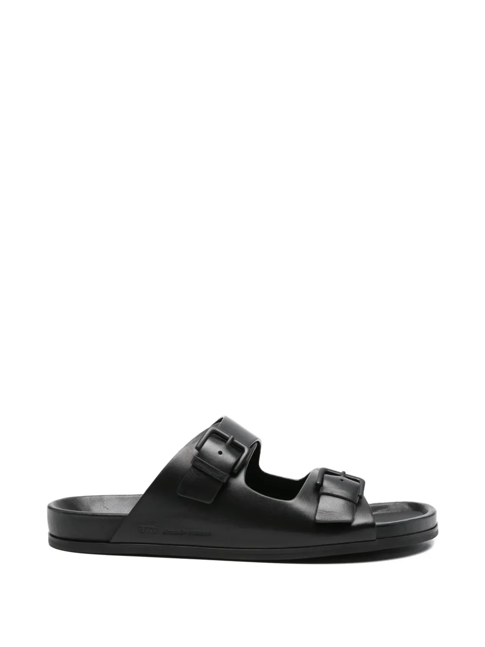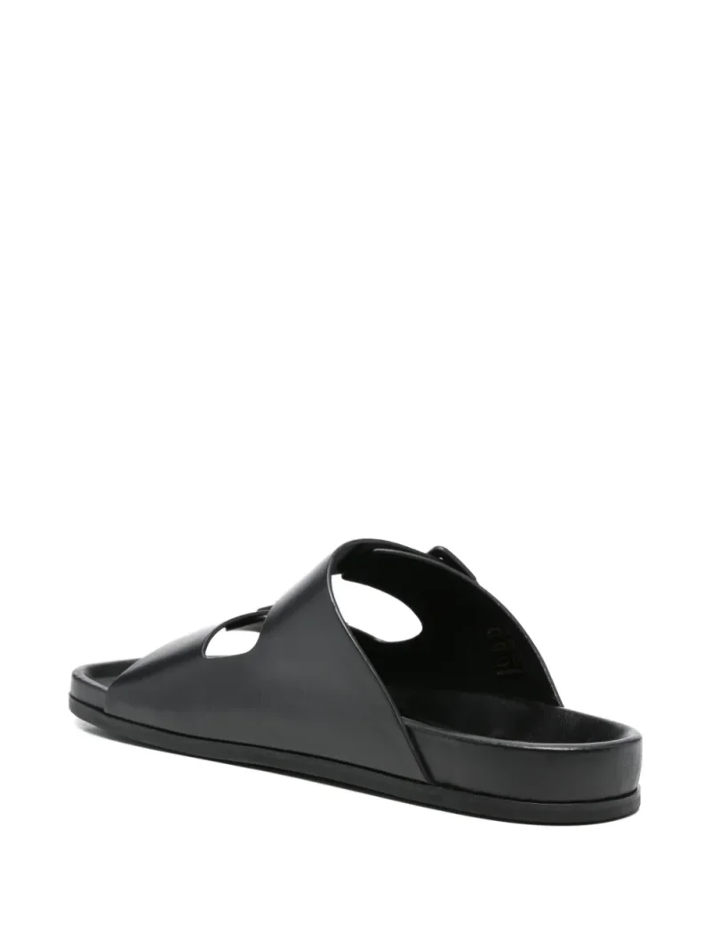 Sandale AMI Paris buckle strap negre, din piele, cu bareta reglabila cu catarama, varf decupat si stil slip-on. 100% piele