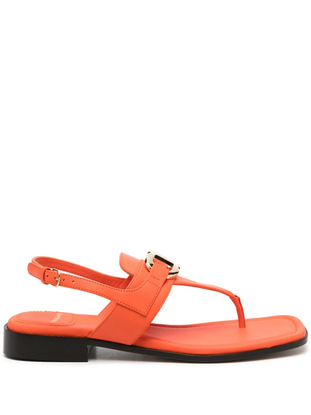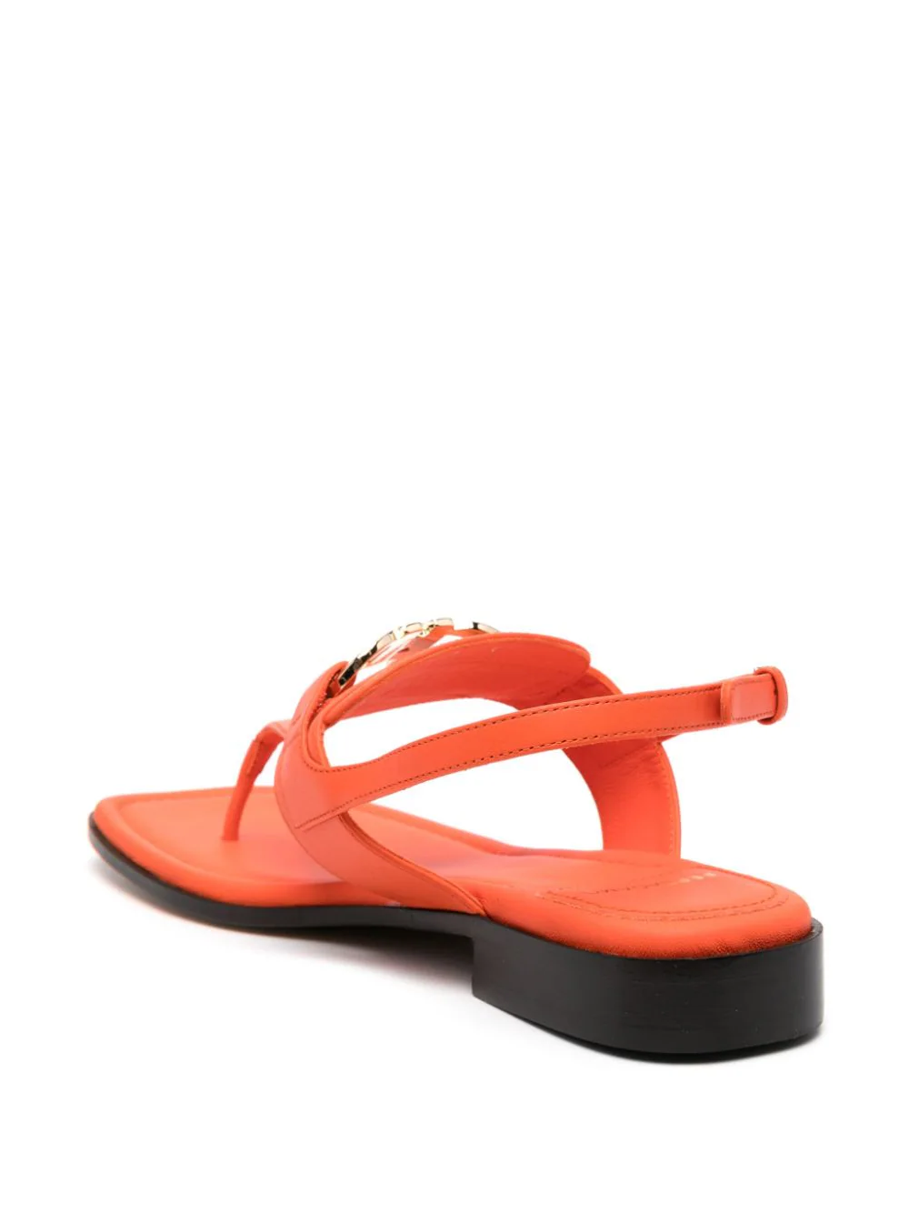 Sandale portocalii din piele de vitel, cu inchidere curea si catarama, emblema aplicata pe partea superioara, logo imprimat, bot drept, talpa inclinata din piele si toc mini de 2.5 cm. 100% piele de vitel; 100% piele de vitel; 100% piele de vitel.