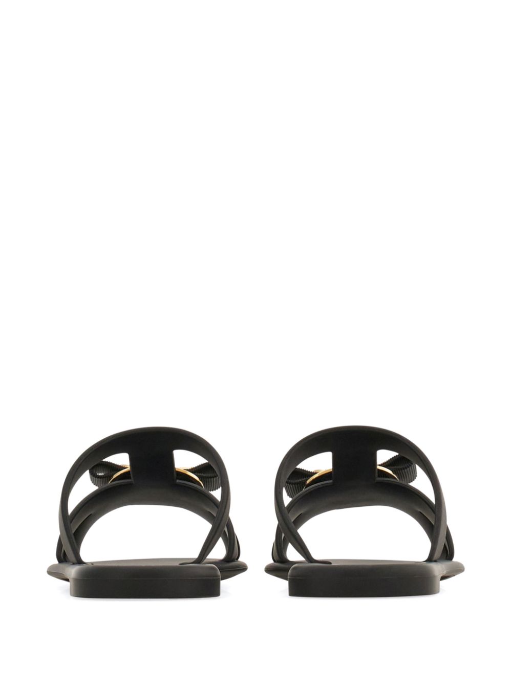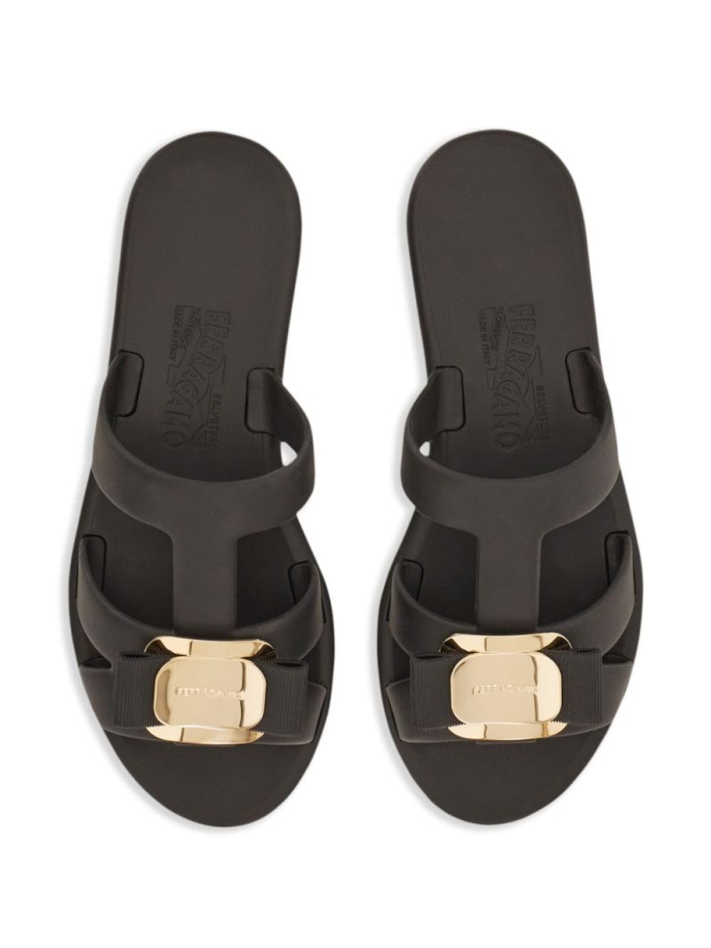 Sandale Ferragamo New Vara Plate negru, slip-on stye, din pvc, cu barete multiple, semnatura Ferragamao Vara Bow aplicata si bot rotund. 100% pvc; 100% pvc.