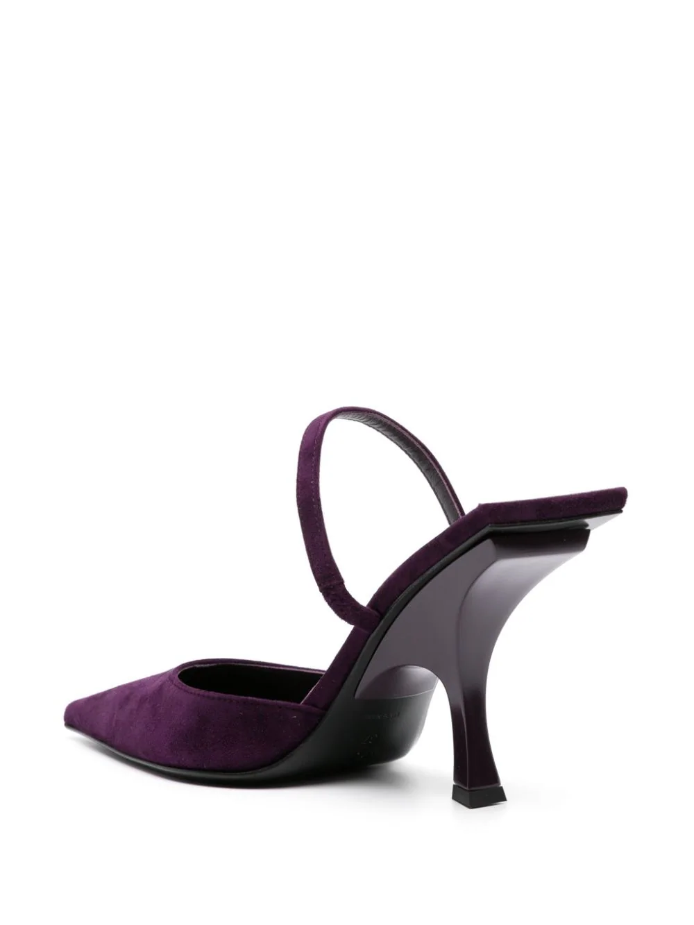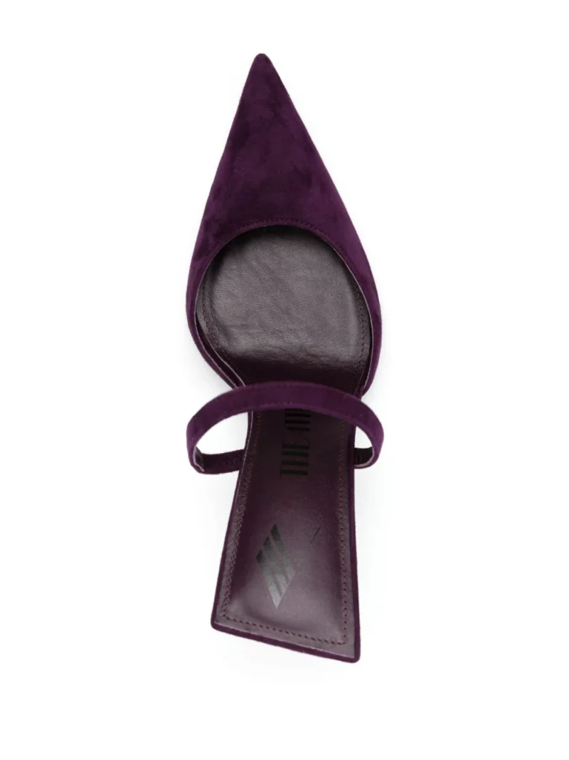 Sandale mov din piele intoarsa, cu inchidere curea elastica, captuseala din piele, logo The Attico imprimat, captuseala din piele, bot ascutit si toc de 9.5 cm. 100% piele intoarsa; 100% piele de vitel; 100% piele de vitel.