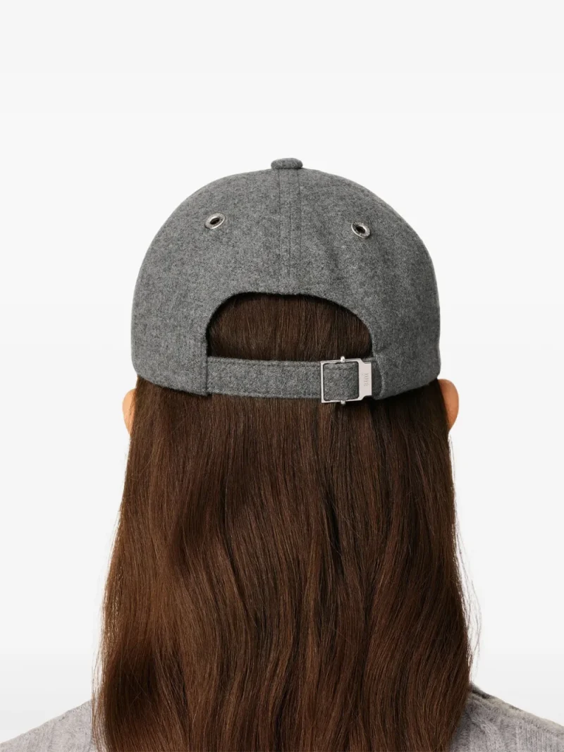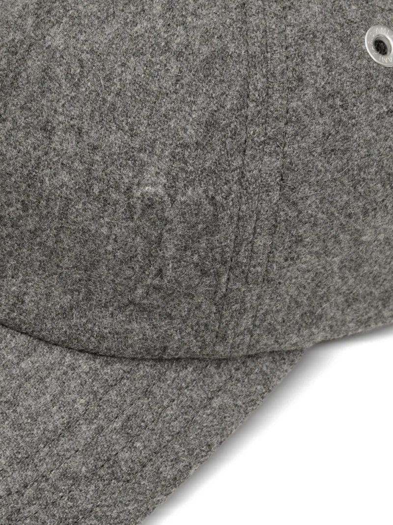 Sapca Ami Paris Ami de Coeur Cotton Embossed gri, construita din lana, cu orificii de aerisire, logo Ami gravat si inchidere ajustabila. 100% lana.
