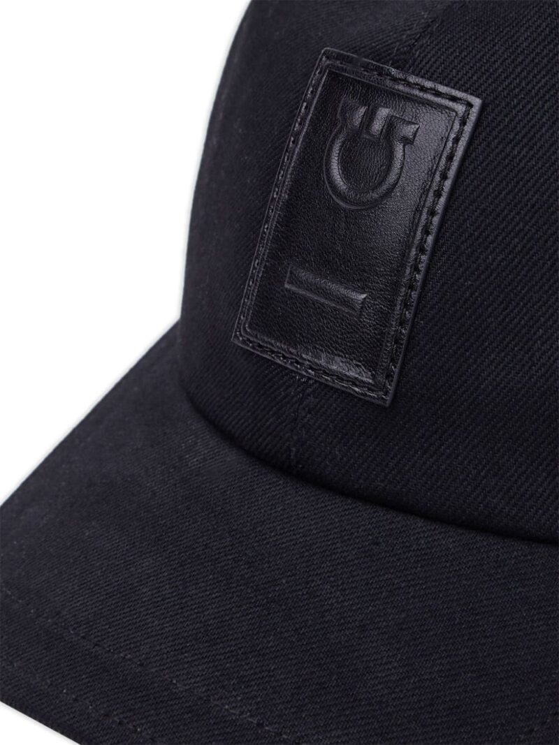 Sapca neagra din bumbac denim, tip baseball, cu inchidere ajustabila, logo din piele FERRAGAMO Gancini aplicat si cozoroc curbat. 100% bumbac; 100% bumbac.