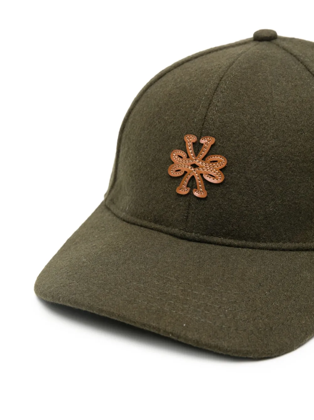 Sapca Jacob Cohen Logo-Patch Baseball khaki, din lana, cu design in panouri, logo patch din piele aplicat pe partea superioara si inchidere ajustabila. 100% piele de vite; 60% lana; 40% poliester.
