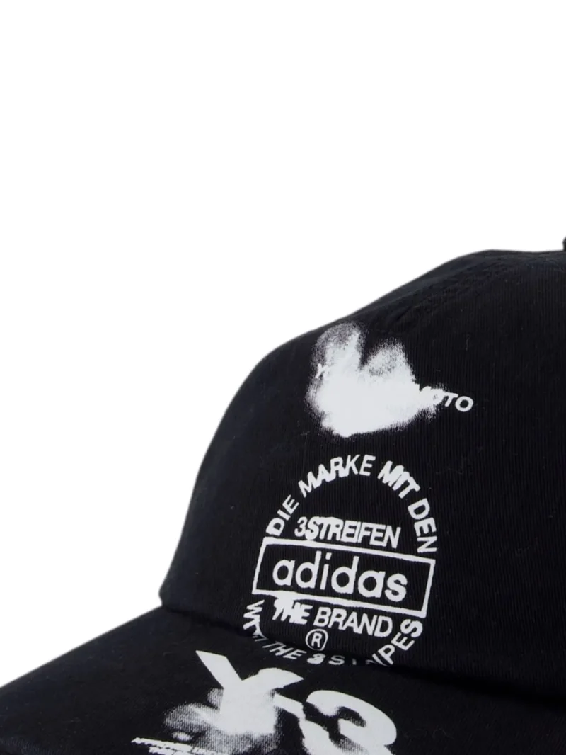Sapca Y-3 Graphic-Print Baseball negru, cu design in panouri din bumbac, grafica imprmimata si inchidere ajustabila. 100% bumbac.