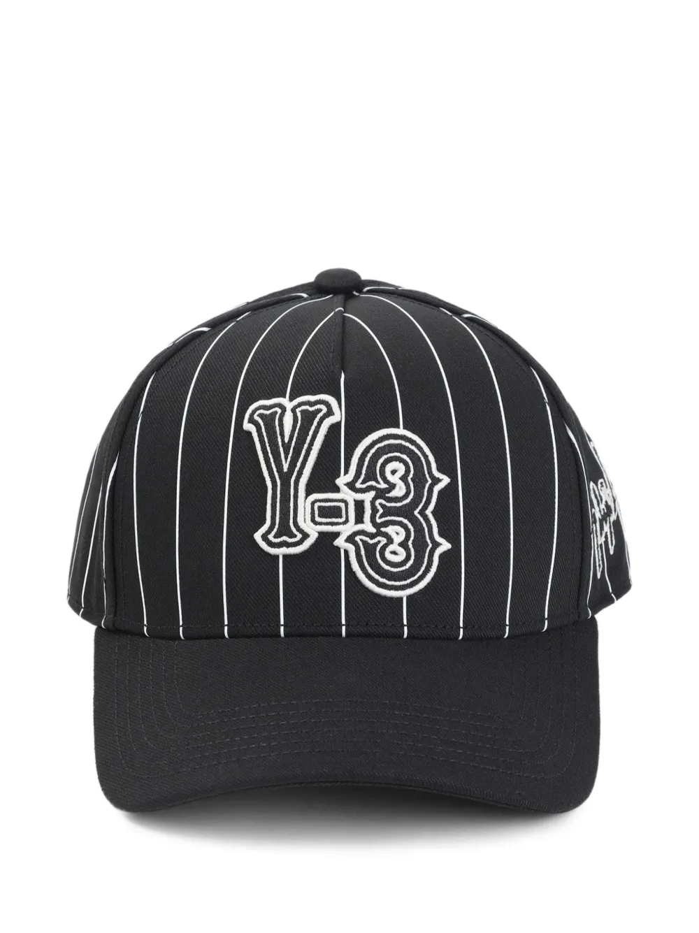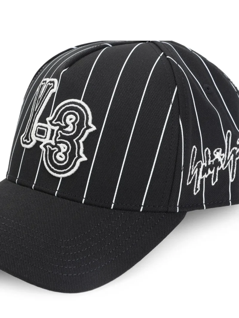 Sapca Y-3 striped logo-detail baseball neagra, cu model pinstripe, detaliu logo si curea reglabila la spate. 100% poliester