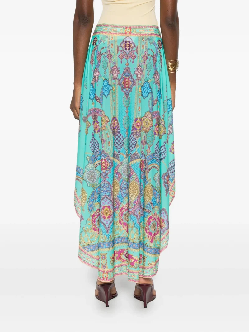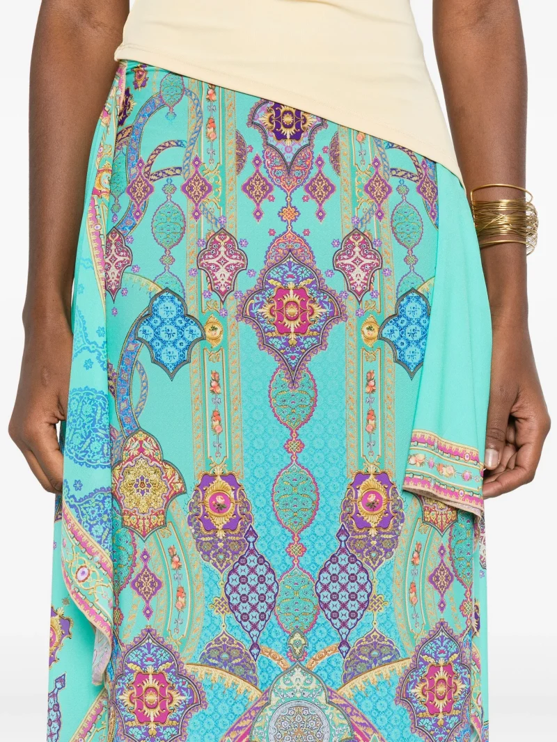 Sarong de plaja Camilla albastru turquoise, cu paisley print, croiala A-line si silueta fluida. 68% nylon 32% elastan