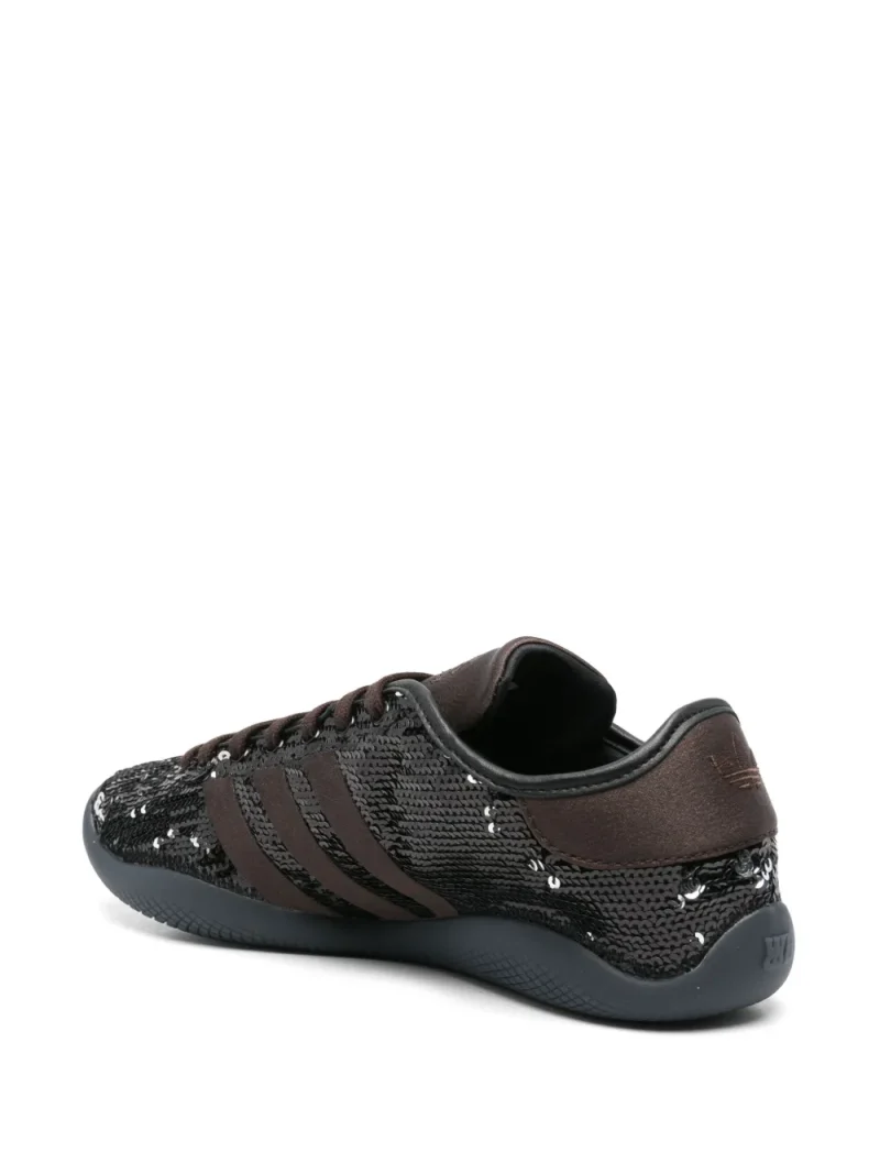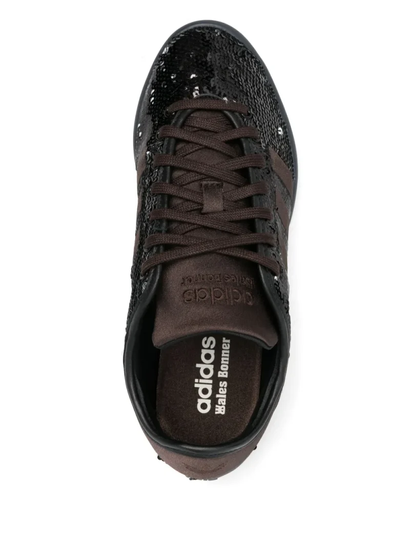 Sneakers Adidas x Wales Bonner Lo Pro negru, cu inchidere sireturi, estetica retro, logo 3-Stripes din satin perforat, decorati cu paiete, captuseala textila si talpa cu profil clasic. 100% cauciuc; 100% material textil.