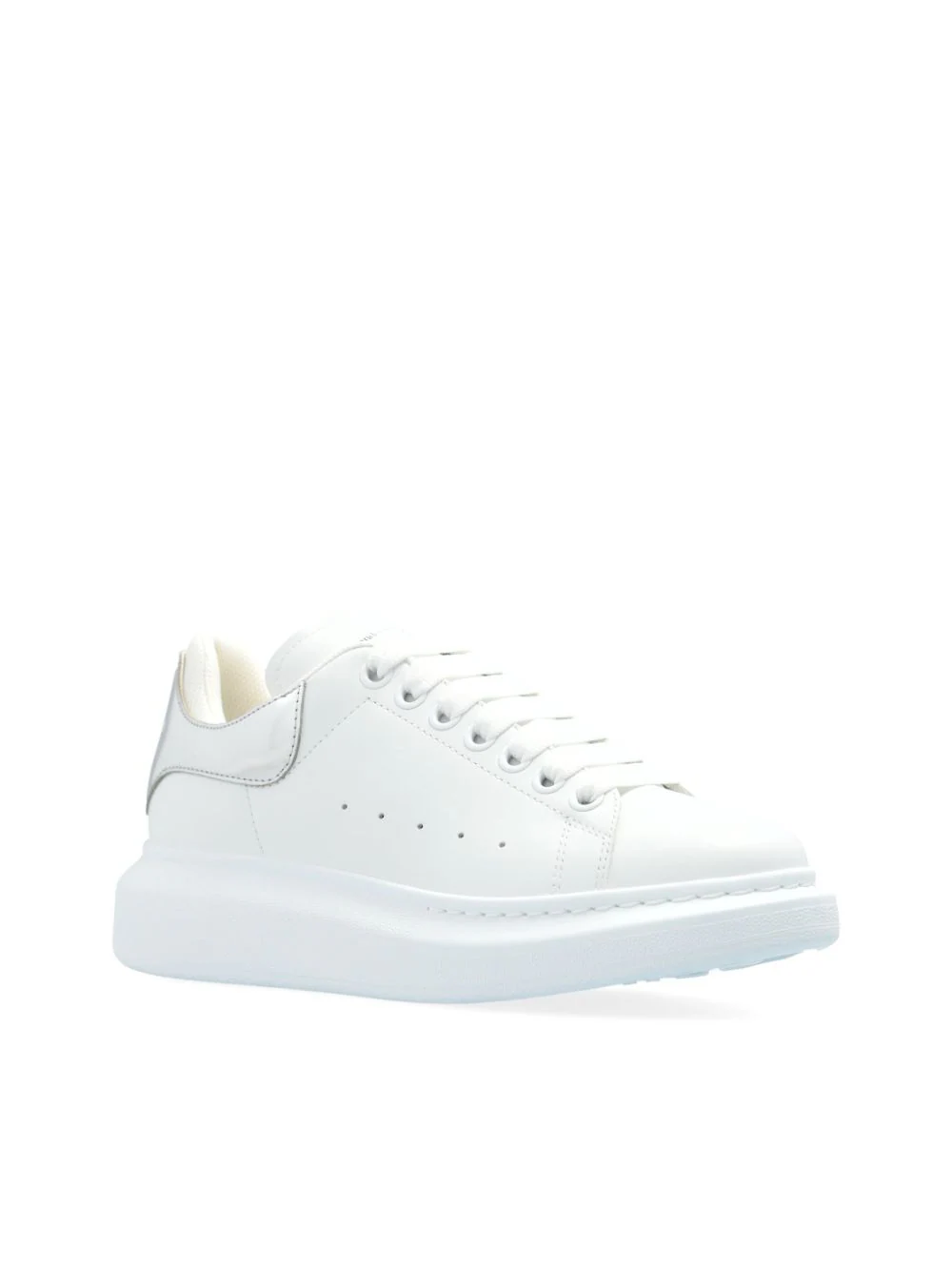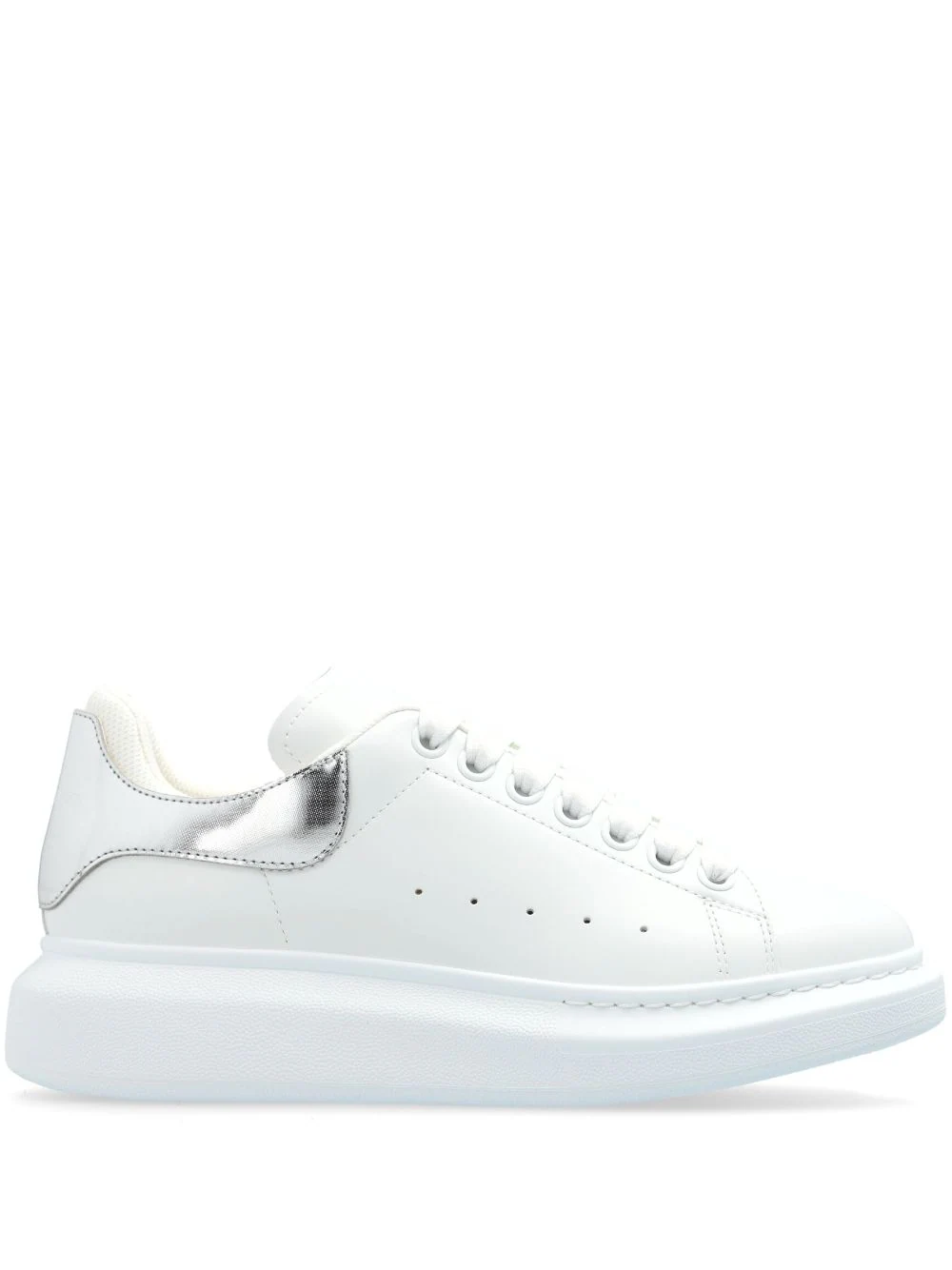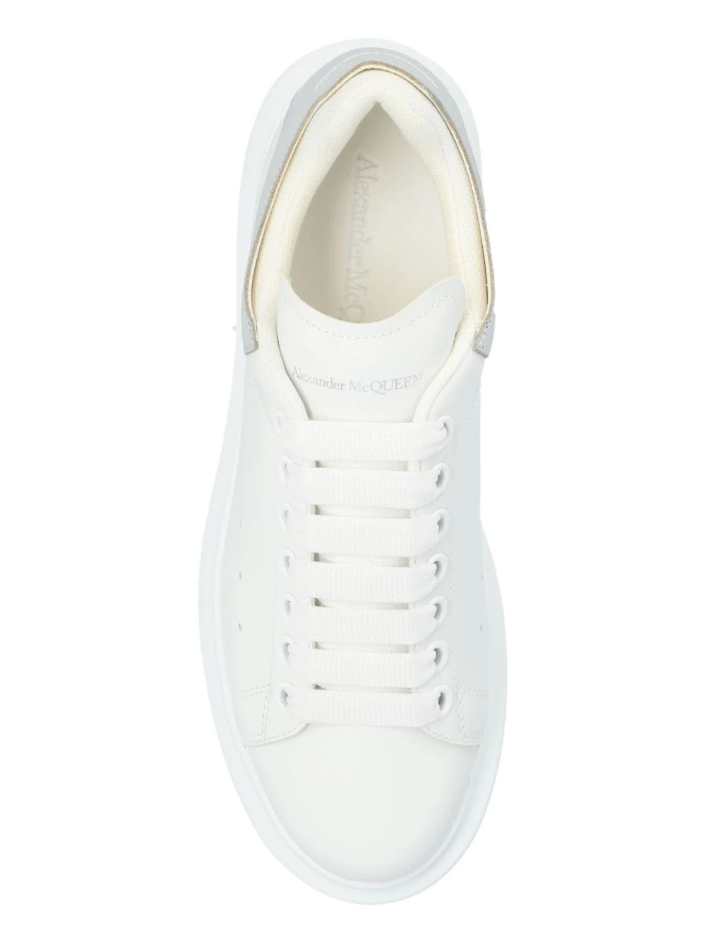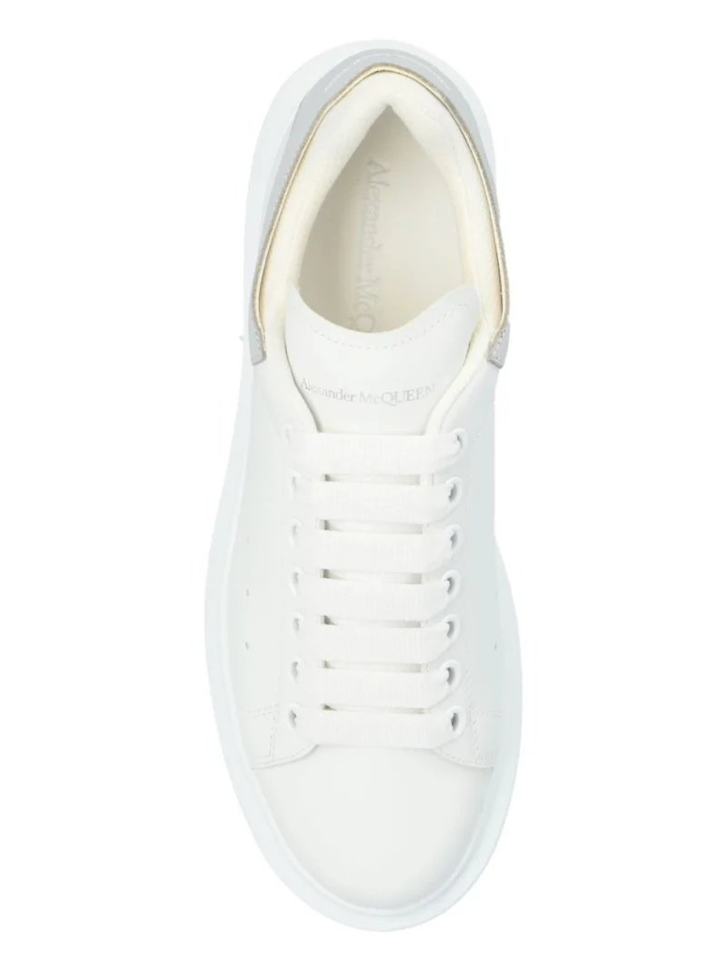 Pantofi albi din piele de vitel, sport, cu profil jos, inchidere cu sireturi, logo AMQ imprimat pe limba, captuseala din piele, petic oglinda cu logo AMQ, bot rotund si talpa supradimensionata din cauciuc. 100% piele de vitel; 100% piele de vitel; 100% cauciuc. Detalii: Inaltime talpa 3 cm. Pantofii sport vin cu un set suplimentar de sireturi. Pentru a reduce impactul asupra mediului si pentru a reduce consumul de bumbac, acesti pantofi sport nu mai contin saculeti de praf in cutie.