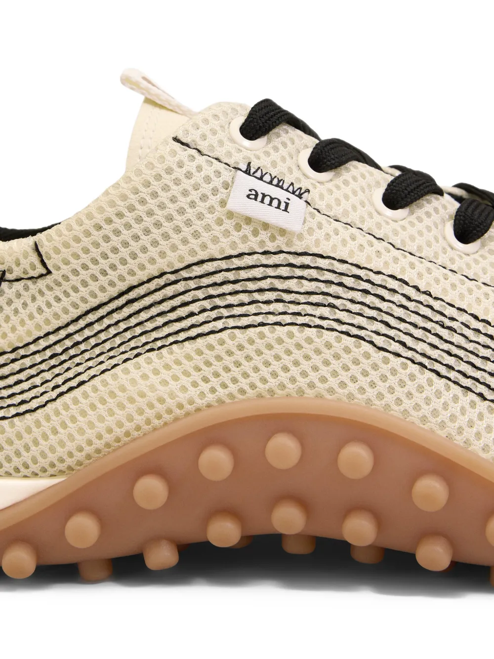 Sneakers AMI Paris Mirage Contrasted-Stitching bej, sport, cu profil jos, inchidere cu sireturi, cusaturi decorative in contrast, eticheta logo pe laterale si captuseala din poliester. 80% poliester; 11% poliamida; 100% poliester; 80% cauciuc; 20% polyethylene.