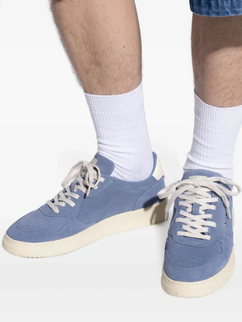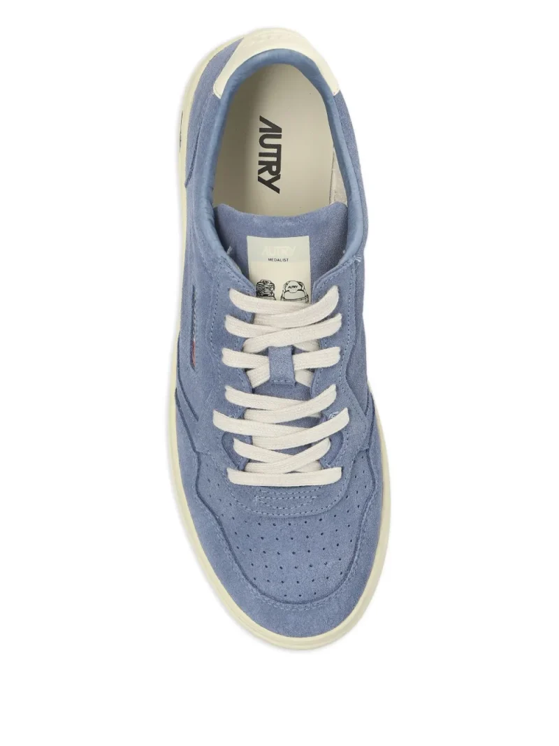 Sneakers AUTRY Medalist Low Perforated Suede albastru, inspirati din anii ’80 cu reinterpretare contemporana, realizati manual din piele intoarsa, cu inchidere sireturi, logo pe laterale, interior din piele, captuseala din bumbac terry si varf cu perforatii. 100% piele de vitel; 100% piele de vitel; 100% textil.; 100% cauciuc.