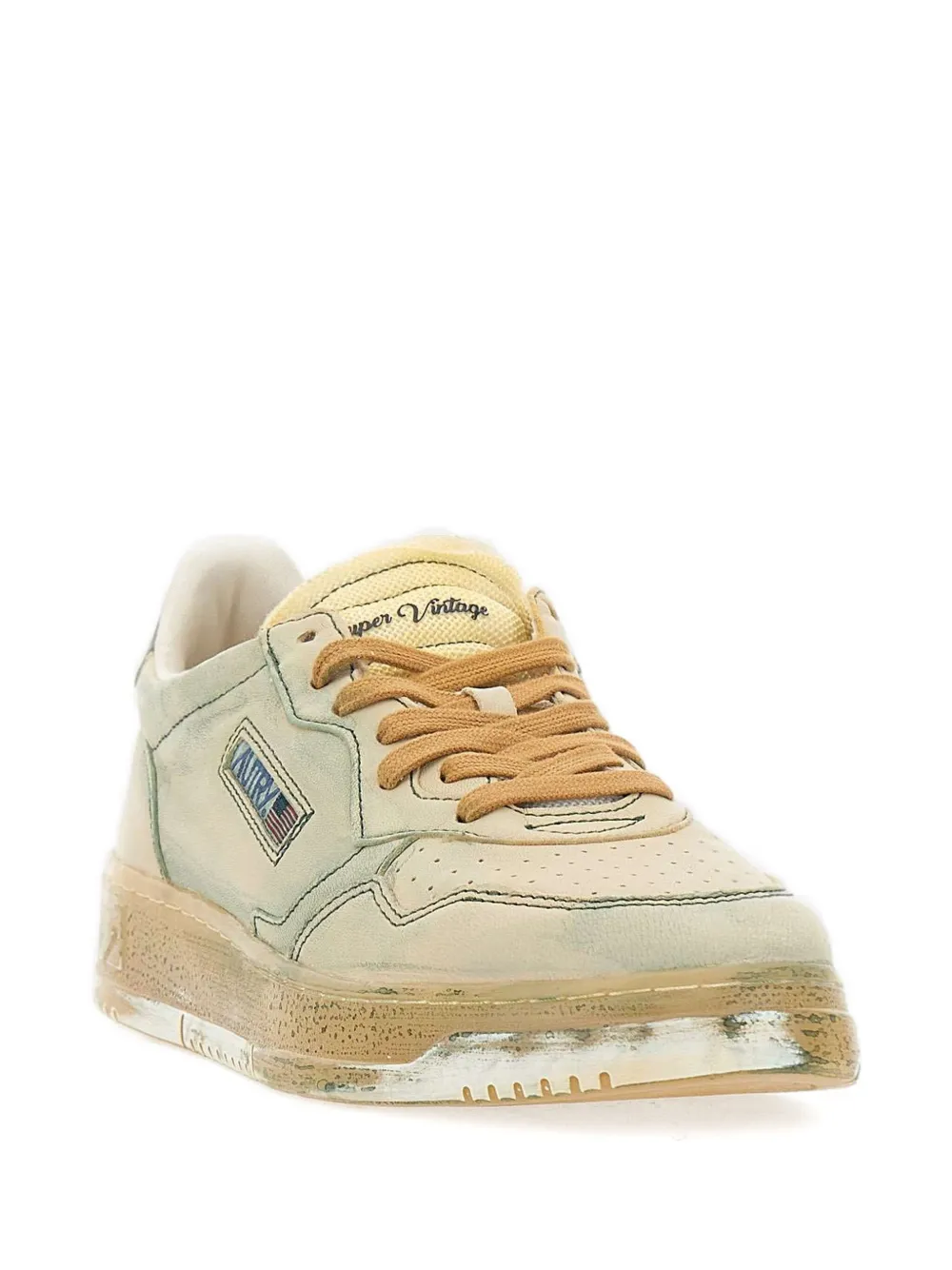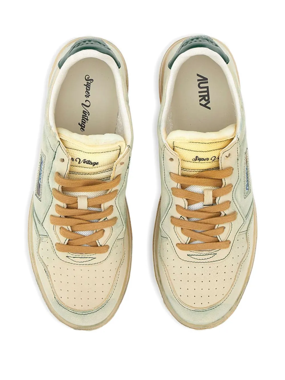 Sneakers Autry Medalist Low Super Vintage verde, model distressed leather finish, inspirat din scena tenisului anilor ’80, cu inchidere sireturi in contrast, patch textil cu logo „AUTRY” cusut pe laterale si talpa cu efect uzat. 100% textil; 100% cauciuc; 100% piele.