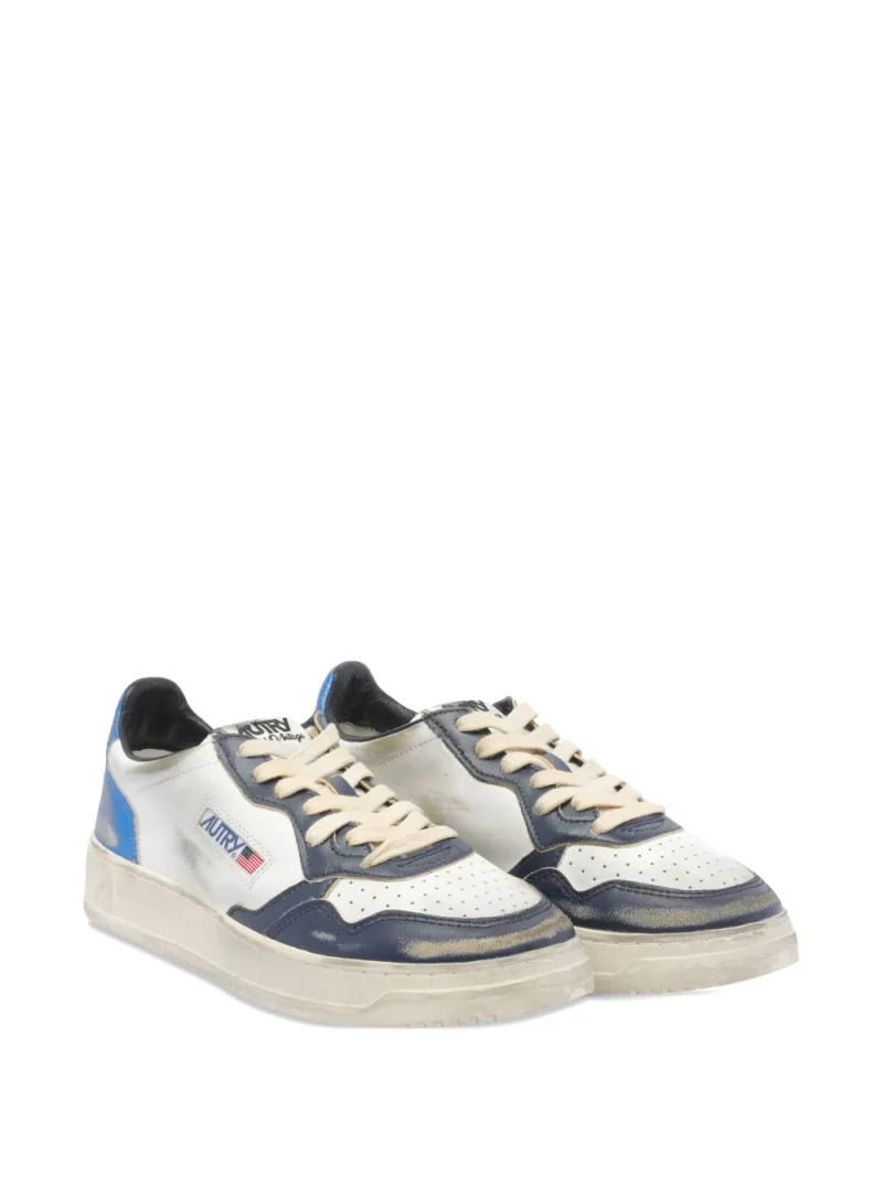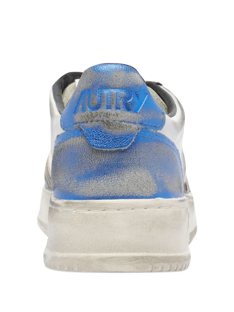 Sneakers AUTRY Super Vintage Medalist albastru, confectionati din piele, inspirati din anii ’80, cu inchidere sireturi plate, brant din piele albastru metalizat la spate, finish handmade de aspect uzat, varf cu micro perforatii, captuseala din bumbac terry si talpa cu logo gravat. 100% cauciuc; 100% piele; 100% textil; 100% piele. Made in Italy.