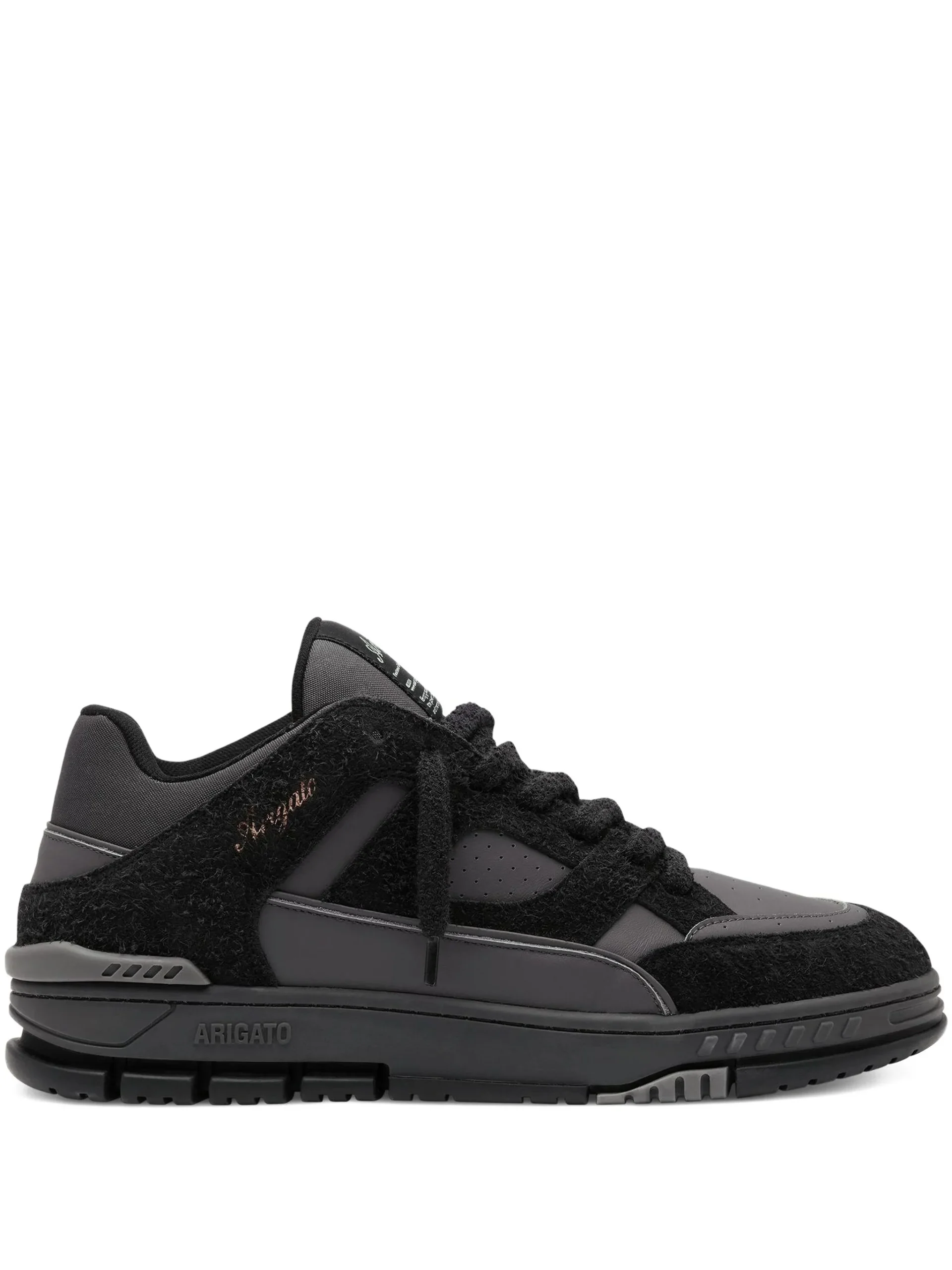 Sneakers Axel Arigato Area Lo Fluffy negri, cu partea superioara din piele si piele intoarsa, inchidere cu siret, detaliu logo, talpa groasa din cauciuc, low-top. 100% piele