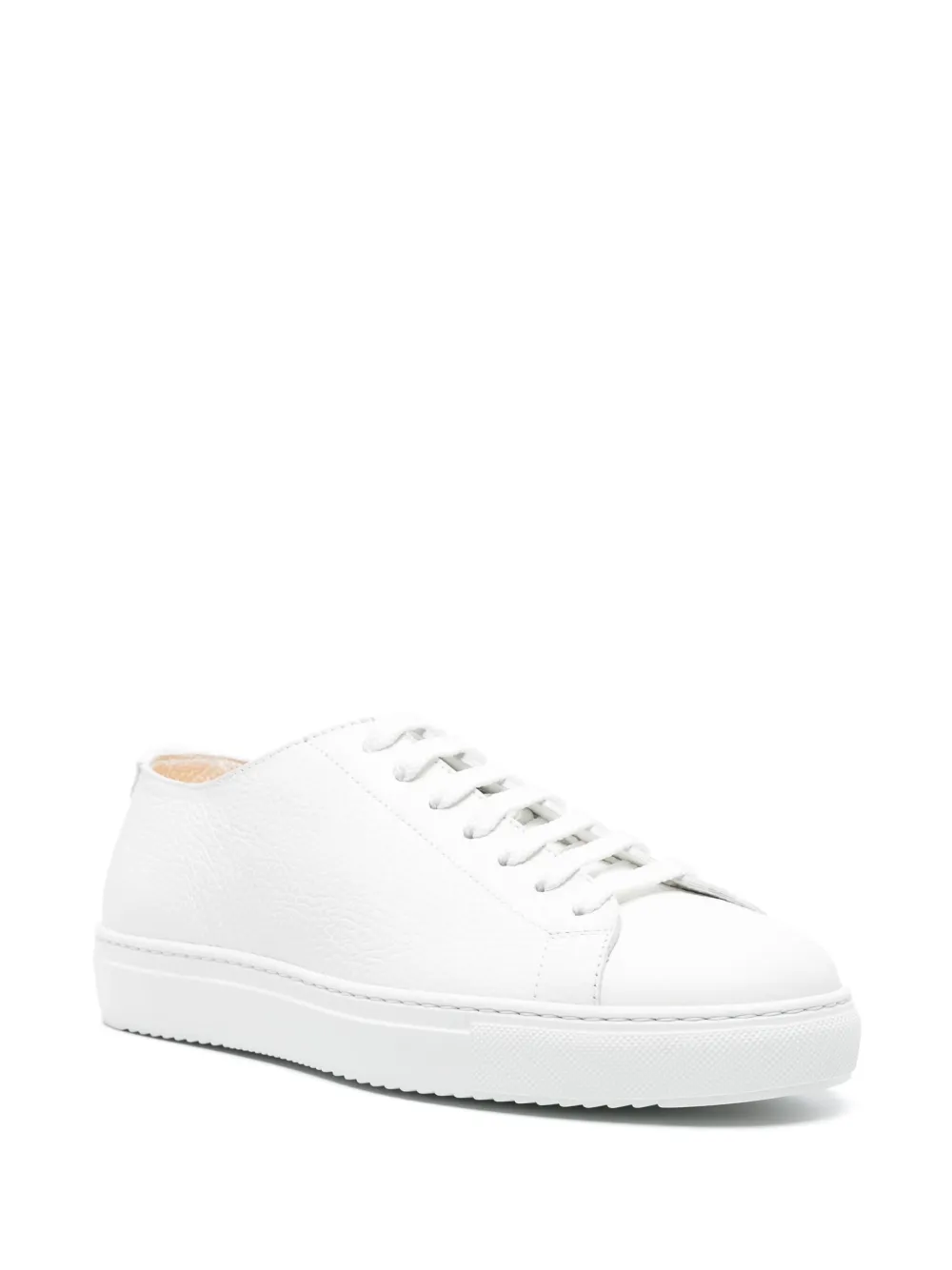 Sneakers Doucal’s Grained Leather Lace-Up alb, din piele, sport, cu profil jos, inchidere cu sireturi, logo imprimat pe limba, captuseala din piele, bot rotund si talpa dreapta din cauciuc. 100% piele de vitel; 100% cauciuc; 100% piele de vitel.