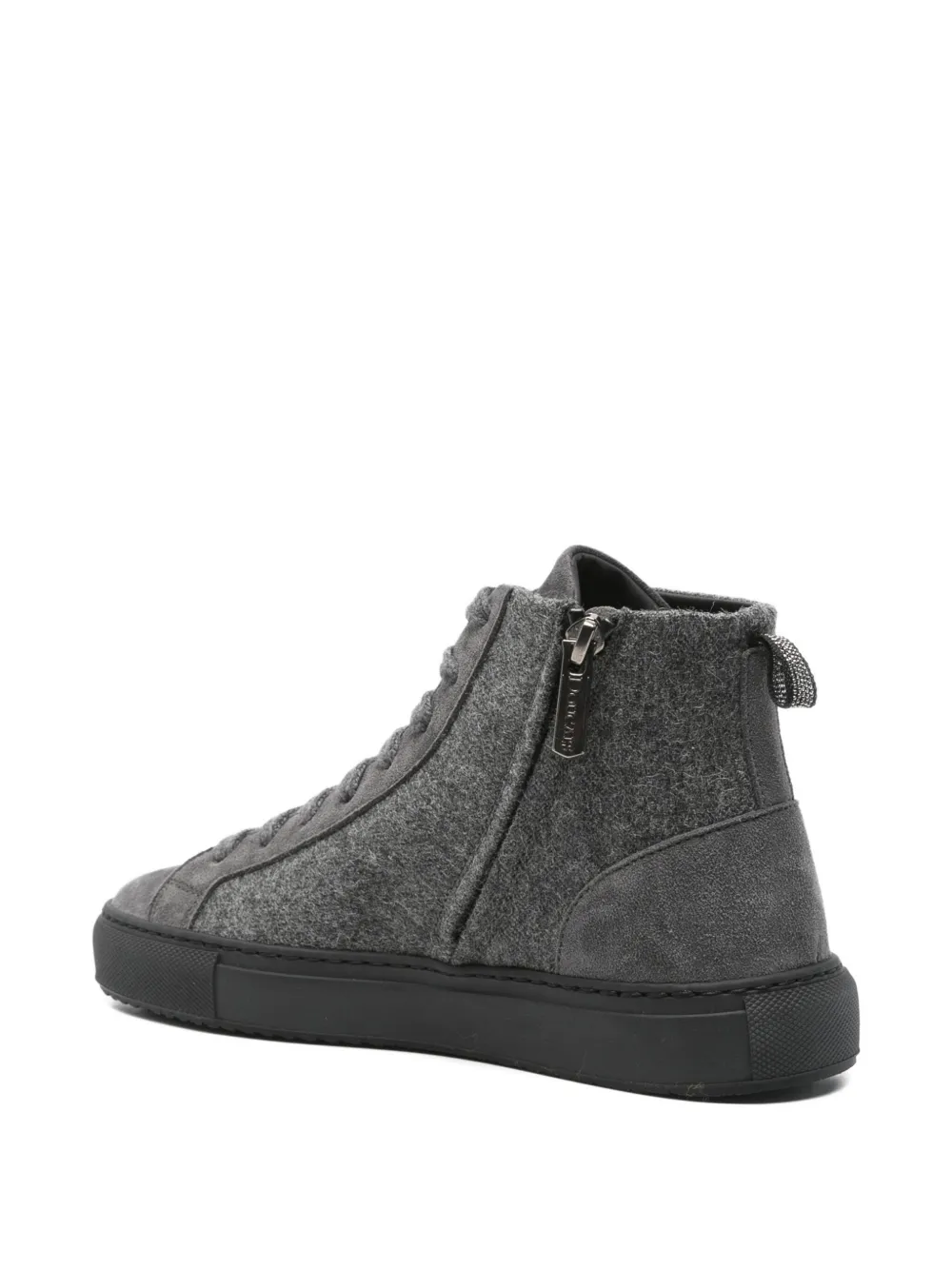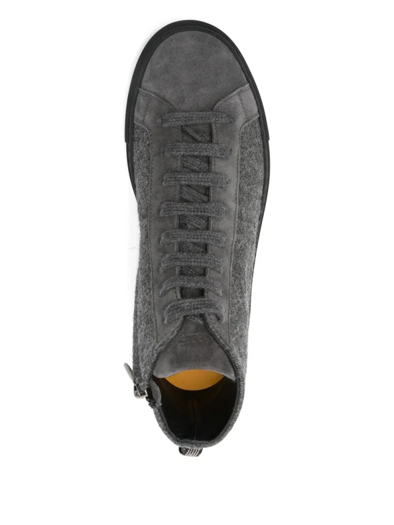 Sneakers Doucal’s Suede Lace-Up gri, design in panouri, cu inchidere fermoar si sireturi, logo imprimat pe talpa, varf rotunjit si talpa dreapta din cauciuc. 100% cauciuc; 100% piele de vitel; 100% textil; 100% piele de vitel.