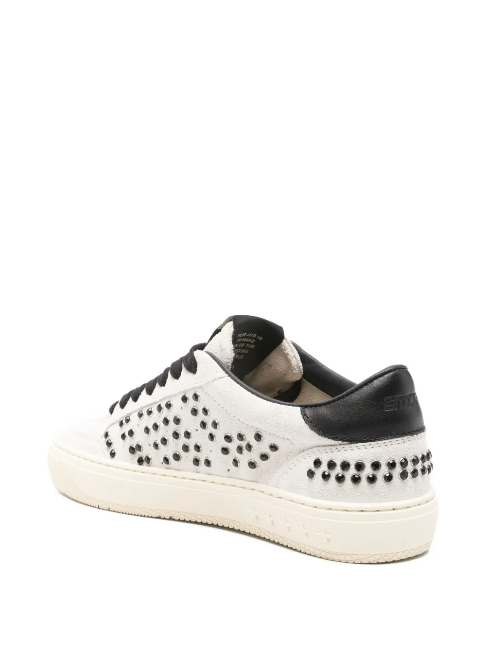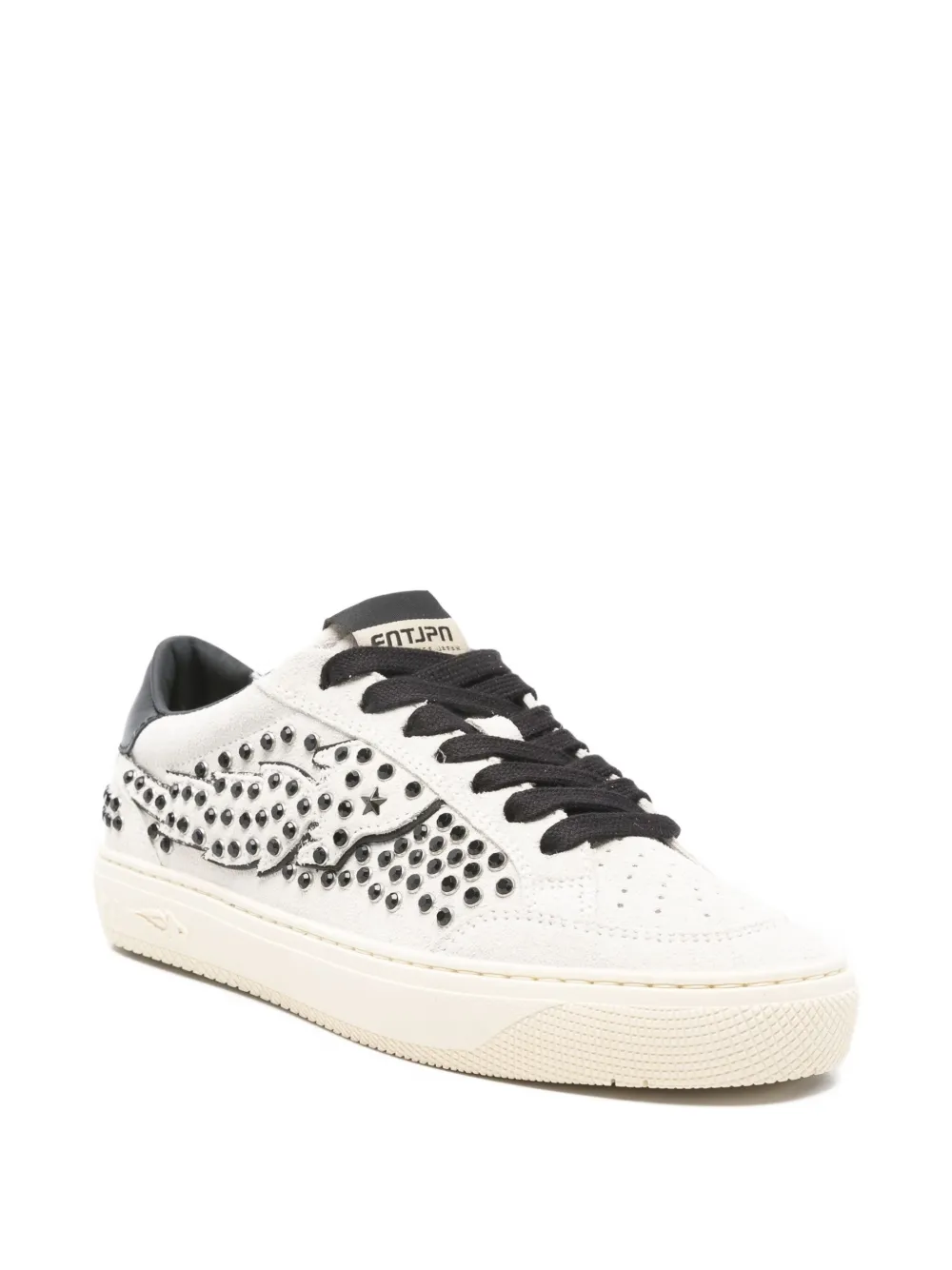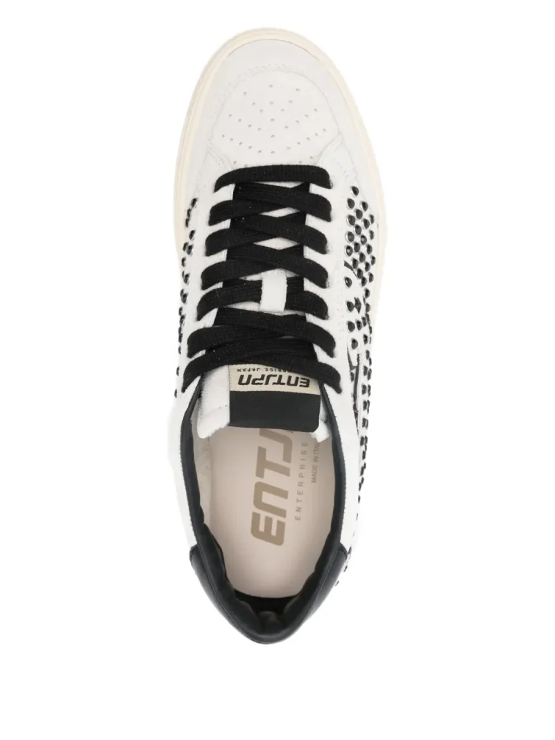 Sneakers Enterprise Japan Suede alb/negru, realizati din piele intoarsa, cu inchidere sireturi plate, decorati integral cu tinte, perforati, logo Entjpn Rocket aplicat pe partea superioara si pe laterale, talpa detasabila si calitate made in Italy. 100% cauciuc; 100% piele;100% textil; 100% piele de vitel.