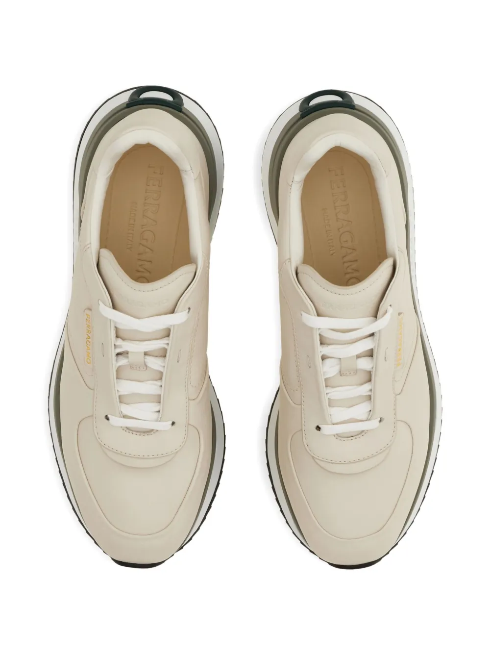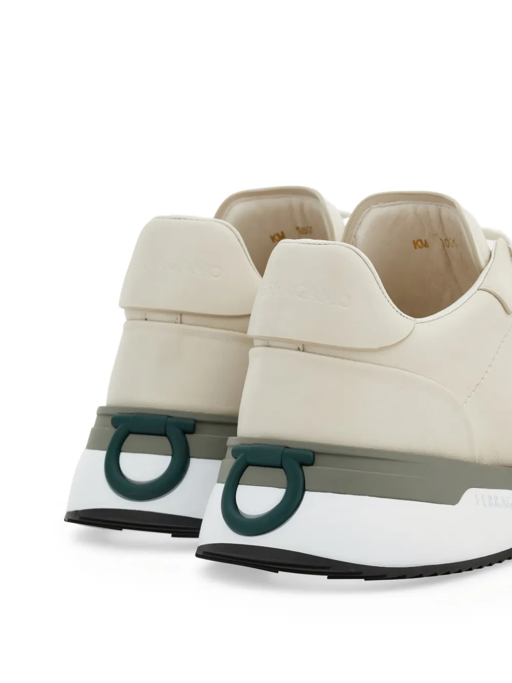 Sneakers Ferragamo Gancini-Detail Low-Top alb, realizati din piele, sport, cu profil jos, inchidere cu sireturi, logo gancini aplicat la spate si talpa suprainaltata din cauciuc. 95% piele de vitel; 5% textil; 100% piele de vitel; 100% cauciuc.