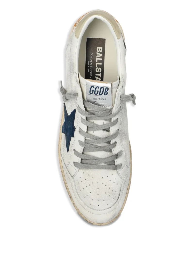 Sneakers Golden Goose Ballstar alb, sport, cu profil jos si inchidere cu sireturi, logo imprimat pe o parte, insertii Golden Goose Star pe laterale, captuseala din piele, brant personalizat cu eticheta de brand, talpa dreapta, aspect vintage si bot rotund. 100% piele naturala; 100% piele naturala; 100% cauciuc.