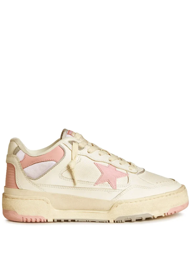 Sneakers Golden Goose Forty2 roz, din piele, cu profil jos, inchidere cu sireturi, logo GGDB Star pe laterale, captuseala din piele, bot rotund, talpa suprainaltata din cauciuc, lucrati manual si aspect uzat. 100% textul; 100% textil; 100% piele de vitel; 100% piele de vitel; 100% cauciuc.