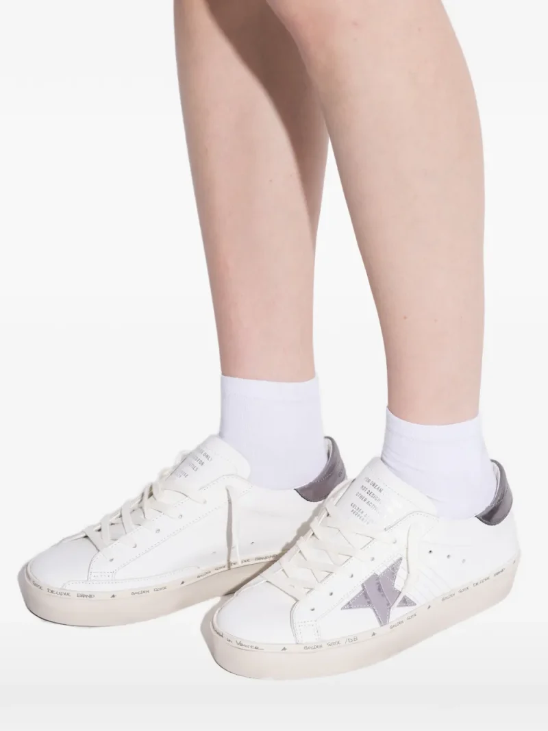 Sneakers Golden Goose Hi Star, piele alba, patch star, model contrastant, inchidere cu sireturi, brant inscriptionat. 100% piele