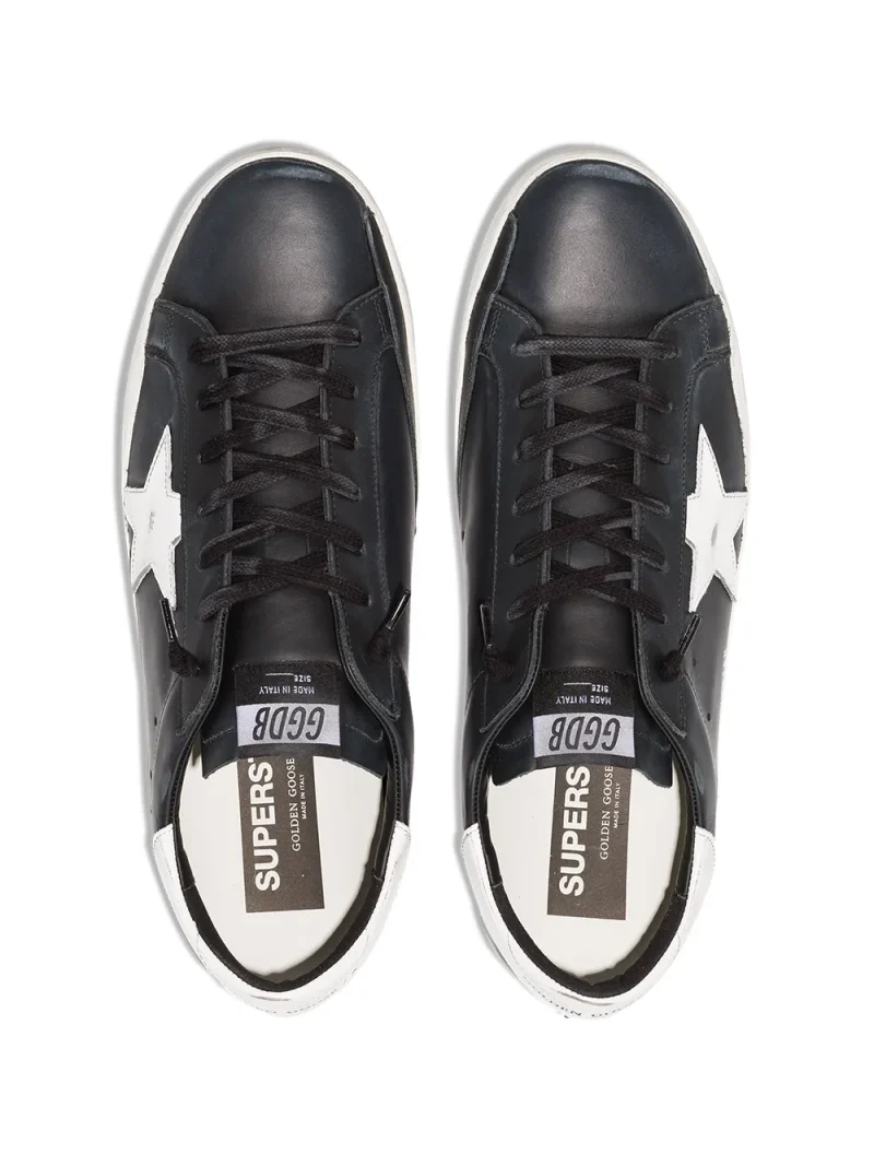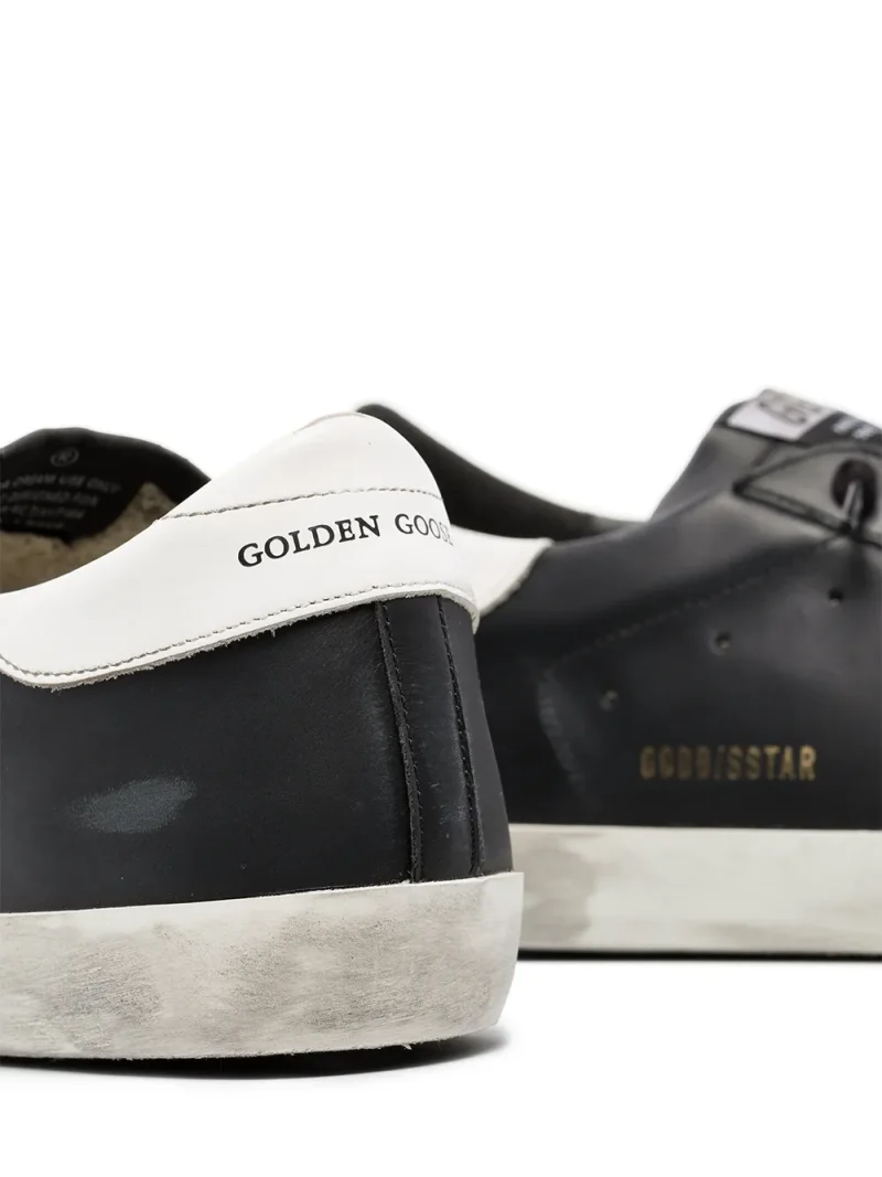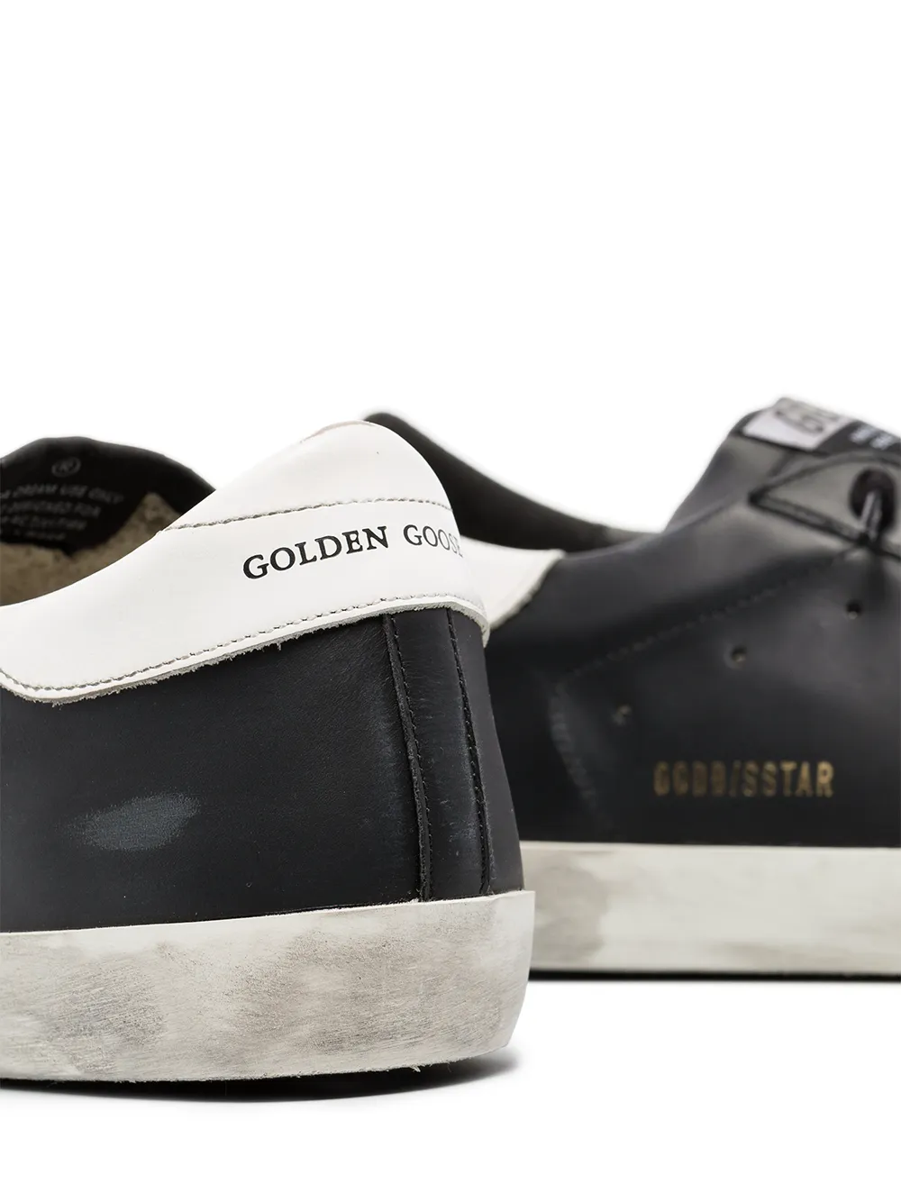 Pantofi negri din piele de vitel, sport, cu profil jos si inchidere cu sireturi, logo GGDB Star aplicat pe laterale, slogan GGDB imprimat pe limba, captuseala din piele si textil, talpa dreapta din cauciuc, bot rotund, aspect uzat si lucrati manual. 100% piele de vitel