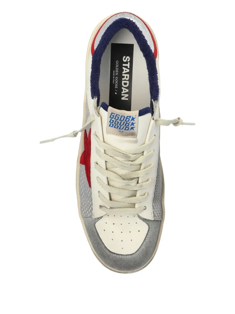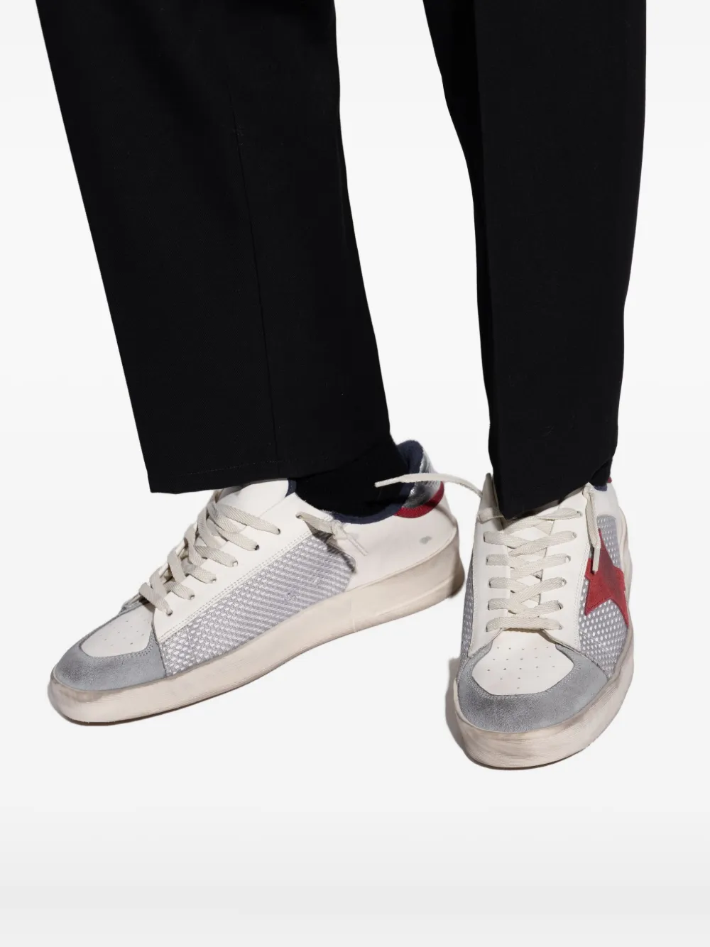 Sneakers Golden Goose Stardan gri, design mesh, cu profil jos, inchiedre cu sireturi, insertie Star in contrast rosu pe o parte, brant din piele la spate, perforatii si bot rotund. 100% piele de vitel; 100% piele de vitel; 100% cauciuc.