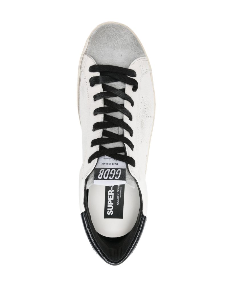 Sneakers Golden Goose Super-Star alb/bej, low top, din piele naturala, cu profil jos, inchidere cu sireturi, logo GGDB Star imprimat pe o parte, captuseala din piele, brant si limba din piele intoarsa, talpa dreapta, bot rotund si aspect uzat. 100% piele de vitel; 100% piele de vitel; 100% cauciuc.