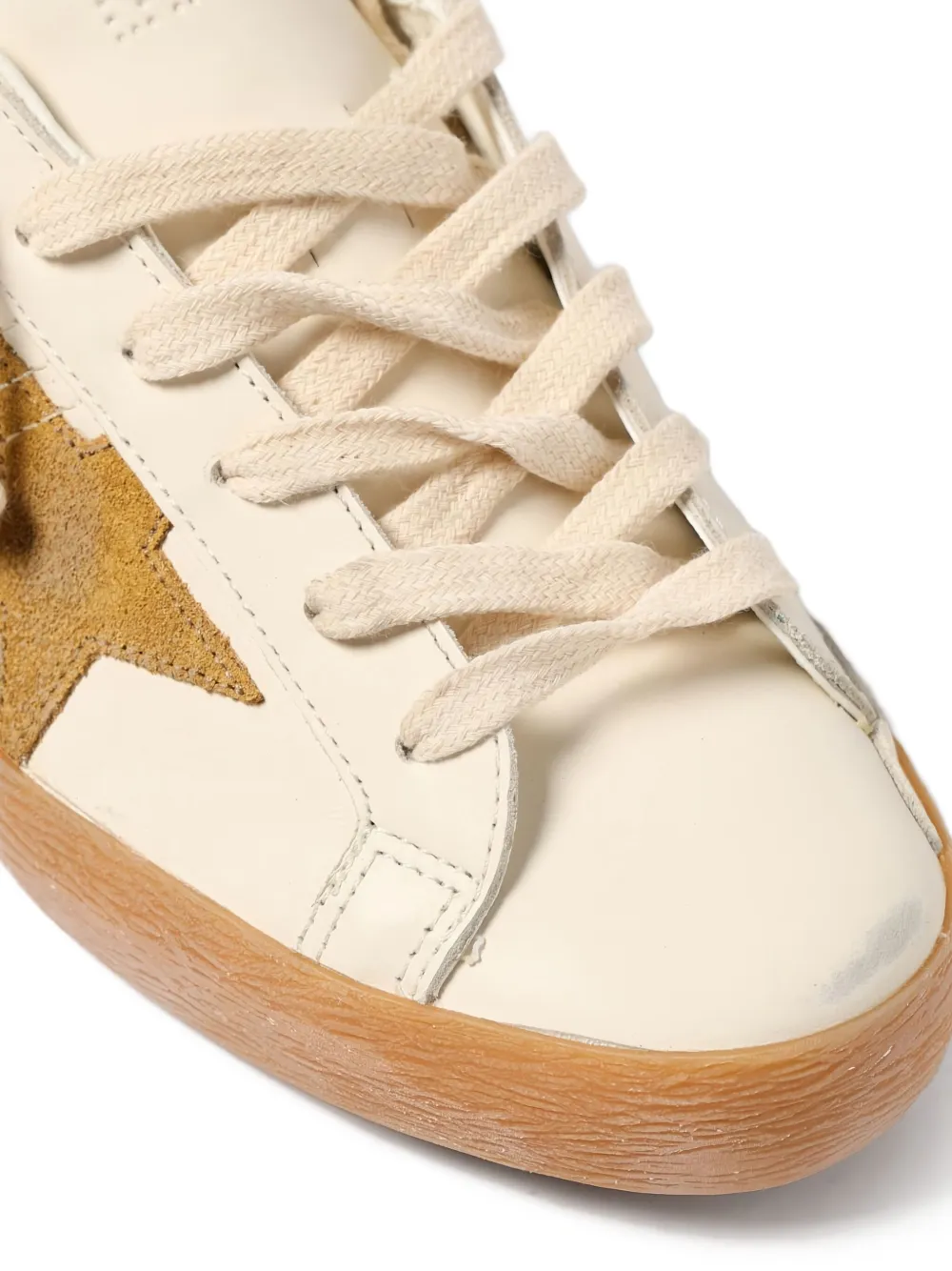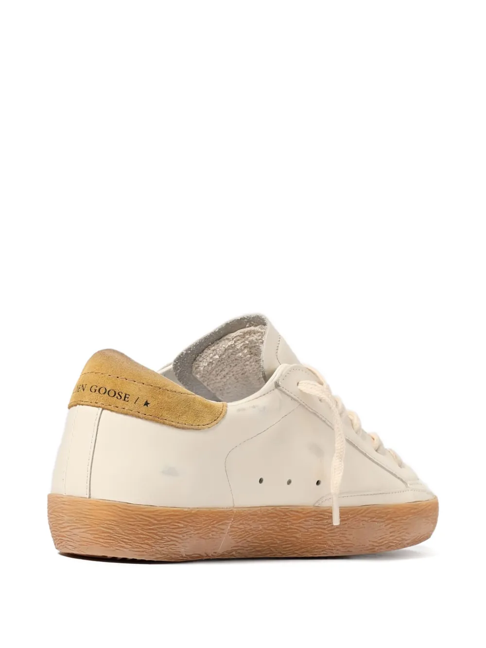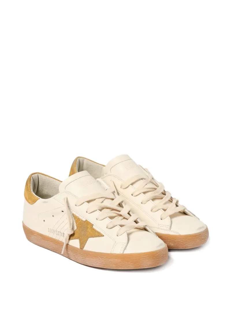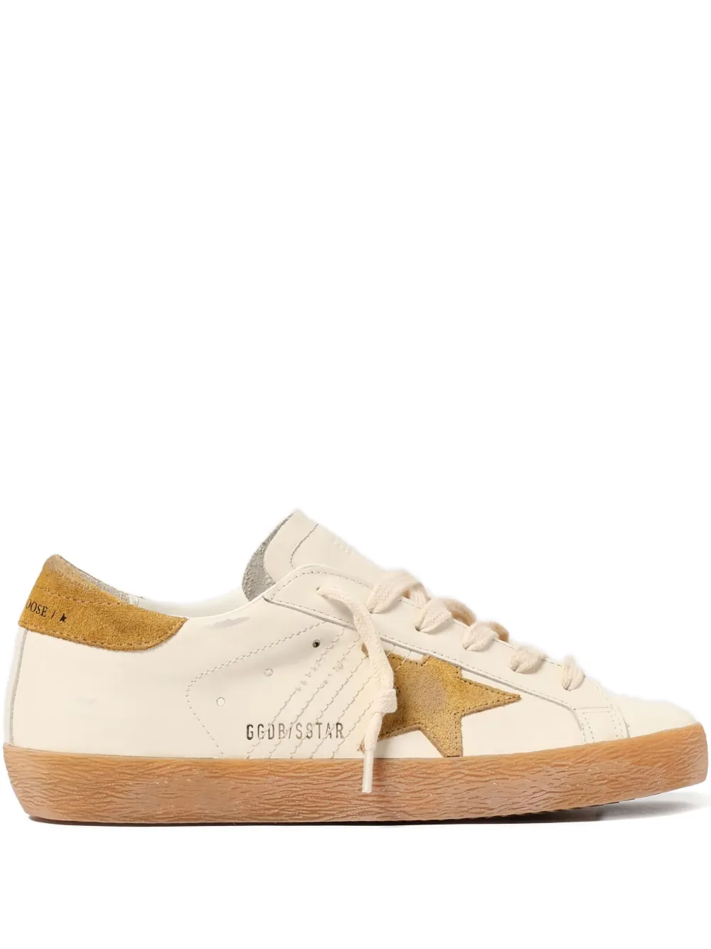 Sneakers Golden Goose Super-Star bej, confectionati din piele, cu profil jos, inchidere cu sireturi, logo GGDB Star aplicat pe laterale, brant personalizat la spate, talpa contrastanta din cauciuc si bot rotunjit. 100% piele de vitel; 100% cauciuc; 100% piele de vitel; 100% piele de vitel.